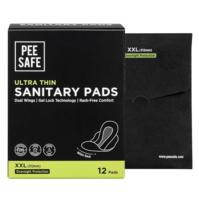 Pee Safe Ultra Thin Sanitary Pads are soft, absorbent, and easy to use. With gel lock technology and overnight protection, they are FDA approved and gentle on your skin. Each box contains 12 XXL pads, perfect for your flow and comfort. Conveniently packaged for on-the-go use.