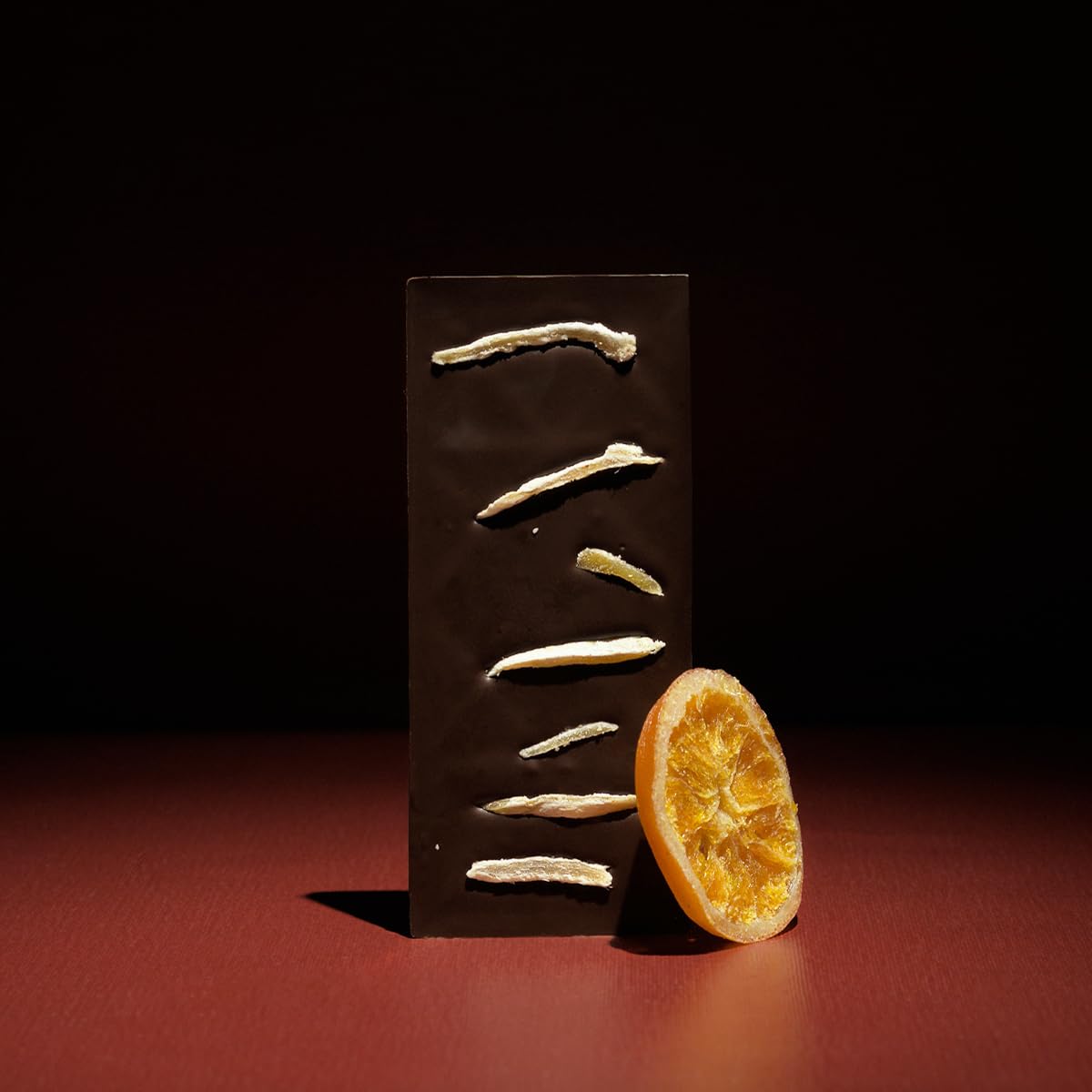 • Orange and Candied Ginger Chocolate, 70% Dark Chocolate Bar