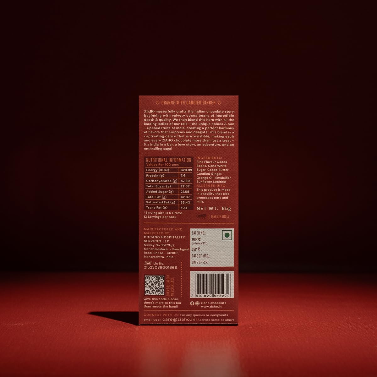 This dark chocolate bar contains 70% cocoa, zesty Nagpur oranges, and spicy candied ginger. Made with premium ginger from Madhya Pradesh, it's a guilt-free indulgence for both dark chocolate lovers and vegans.