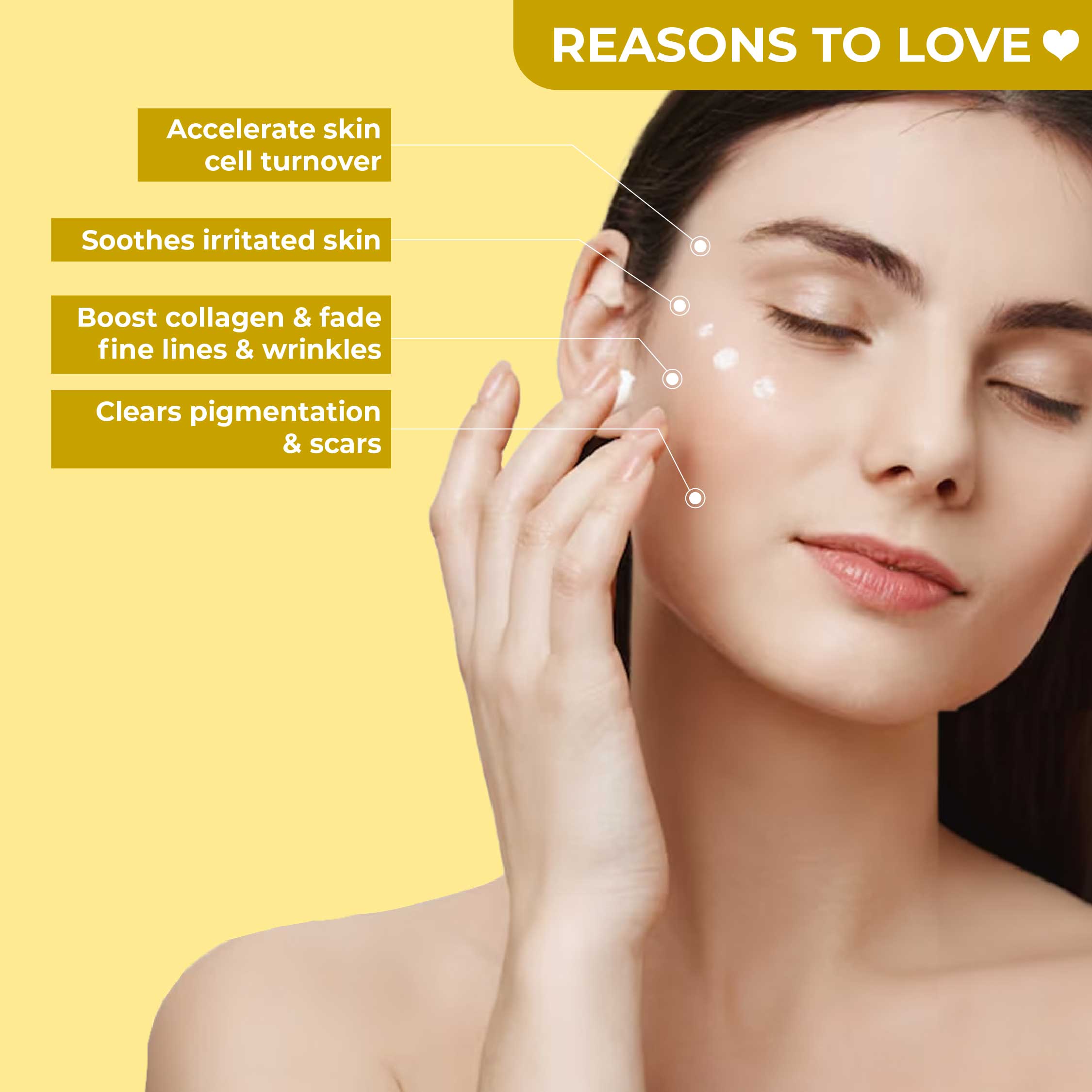 Unleash the full potential of your nightly routine with our potent retinol-infused night cream. Advance glow repair cream deeply nourishes and safeguards your skin while you sleep. Awaken to a revitalized and refreshed complexion, ready to conquer the day. Our innovative blend of Retinol, alpha arbutin, and mulethi extract illuminates the skin, fades pigmentation, and diminishes the effects of aging, revealing a luminous and even skin tone for a truly radiant appearance.