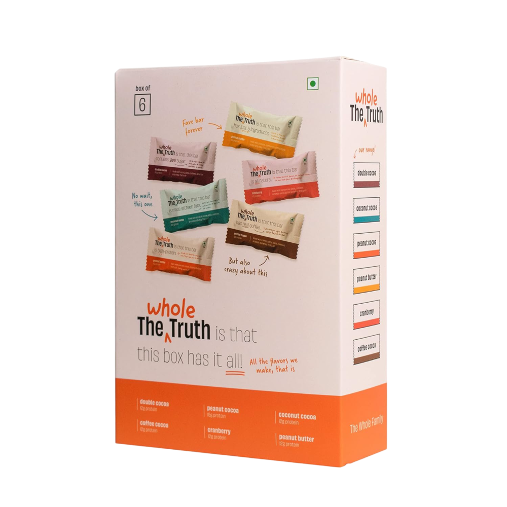 Assorted Flavors: Includes 1 Double Cocoa Bar, 1 Coconut Cocoa Bar, 1 Coffee Cocoa Bar, 1 Peanut Butter Bar, 1 Cranberry Bar, and 1 Peanut Cocoa Bar.