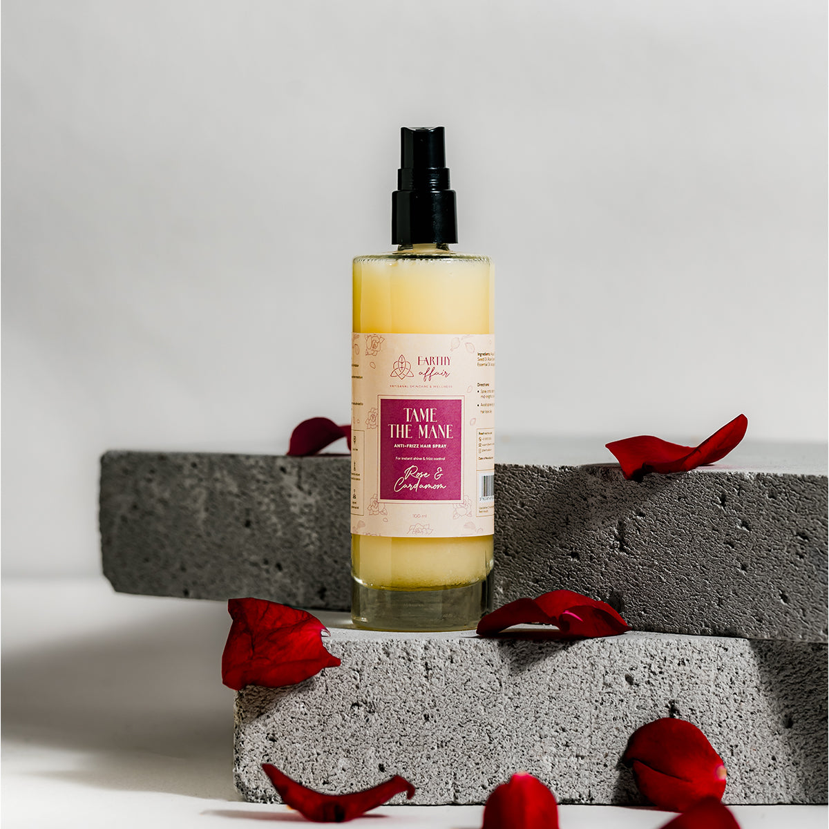 Tired of battling frizzy hair? Tame the Mane, our natural anti-frizz hair spray is here to save the day! Formulated with a blend of lightweight ingredients, this hair spray is your go-to solution for instantly taming frizz and achieving a sleek, polished look.