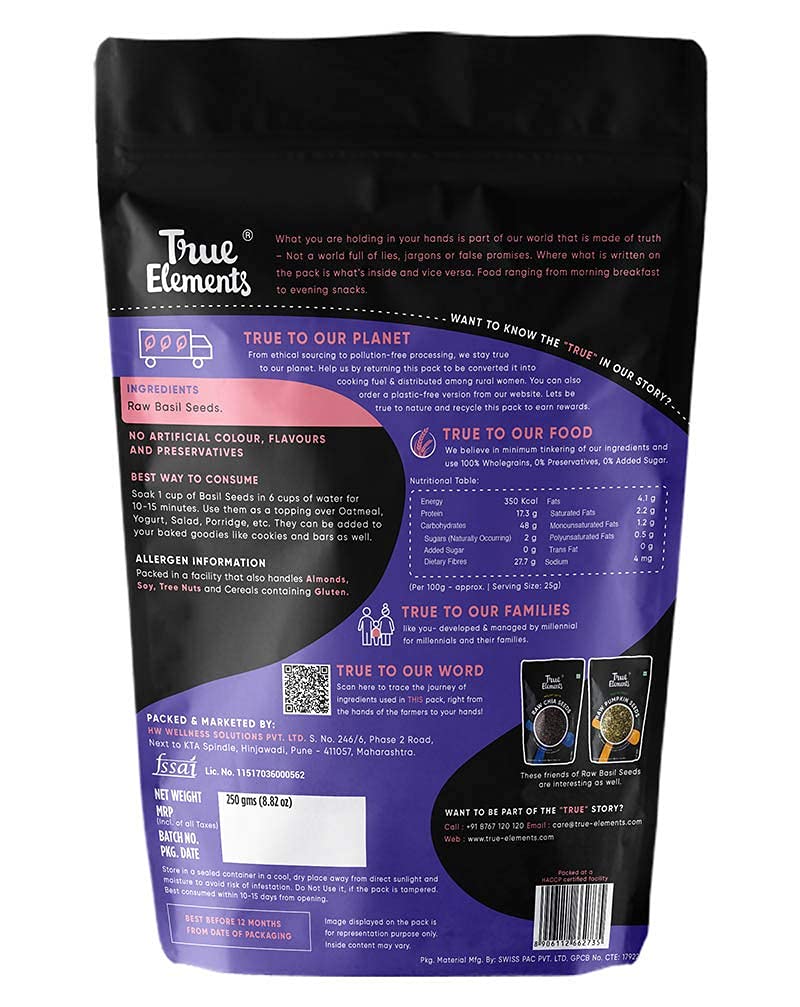 True Elements Basil Seeds (Nigella Seeds) are 100% natural, raw seeds of high quality which are free from any artificial additives. Whether you're looking to snack guilt-free or add a crunchy topping to your salads or smoothie bowls, our Raw Basil Seeds are the perfect choice. We take pride in delivering Basil Seeds that are not just clean but also free from any impurities or foul smells. No dirt, no stones – just pure goodness!