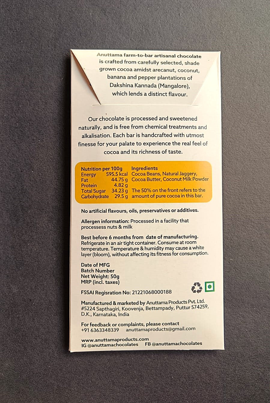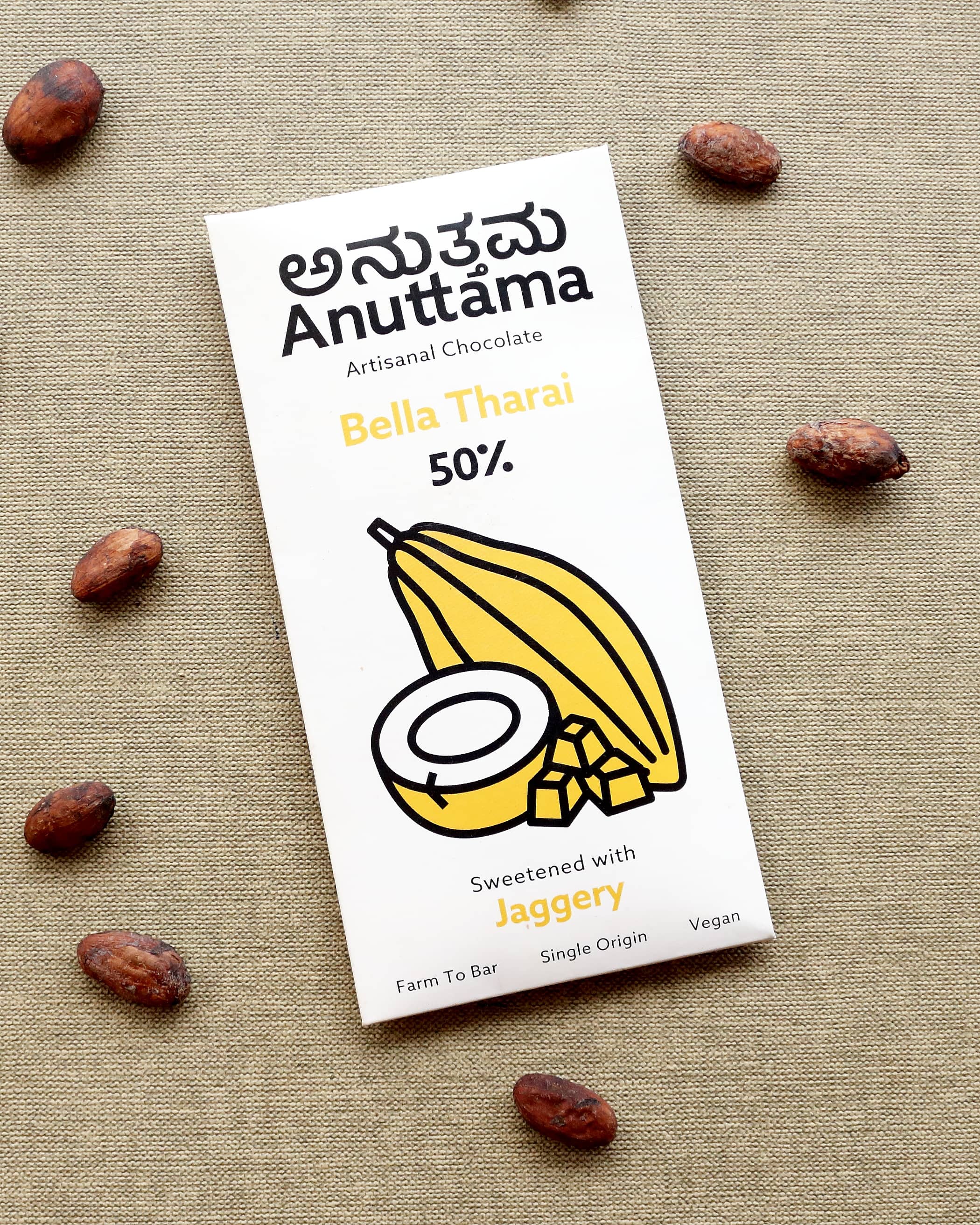 Introducing Absolute Coffee's unique FARM TO BAR Chocolate with COCONUT MYLK and JAGGERY. A delightful tribute to Tulunadu, where Bella Tharai (Jaggery and Coconut) is treasured. A vegan-friendly, regional flavor sensation.