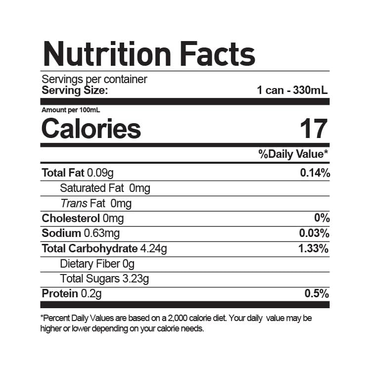 Nutritional Info: Low-calorie and low-sugar (3 grams of sugar per 100 ml).