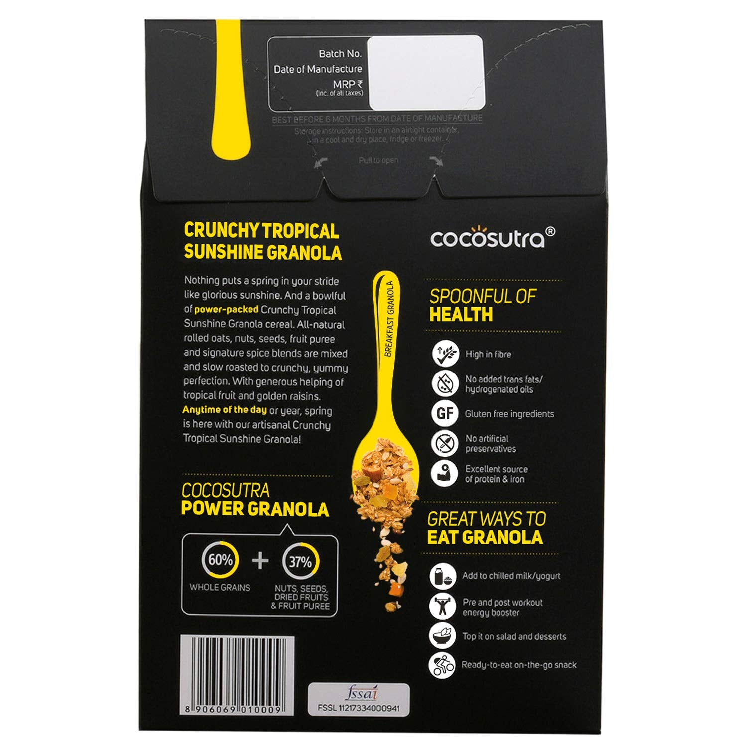 Experience the flavors of sunshine with our gluten-free and vegan Crunchy Tropical Sunshine Granola. Made with all-natural ingredients, it's a delicious and nutritious breakfast or snack option - perfect with milk, yogurt, or as a topping for roasted fruit. With low sugar, no additives, and a healthy dose of protein, it's a guilt-free treat anytime of the day.