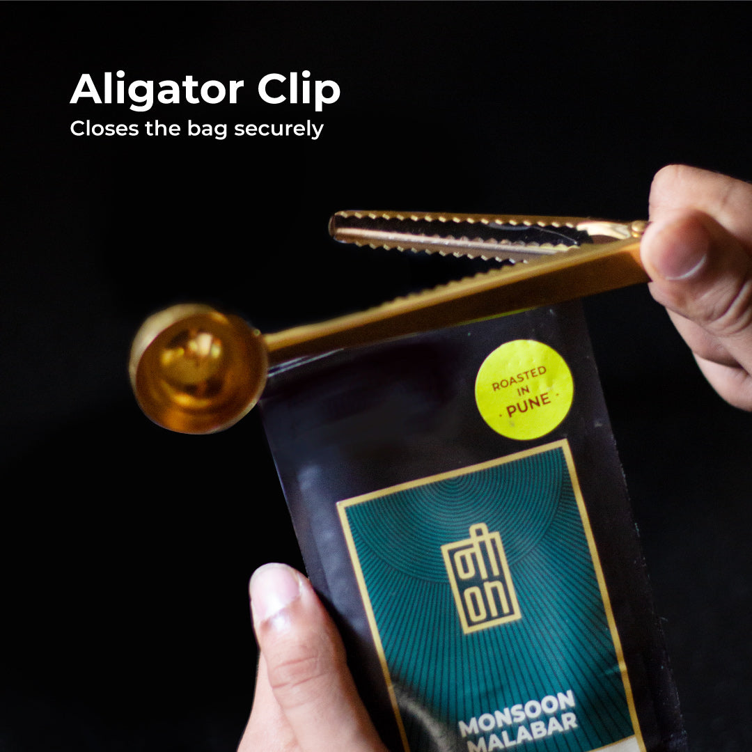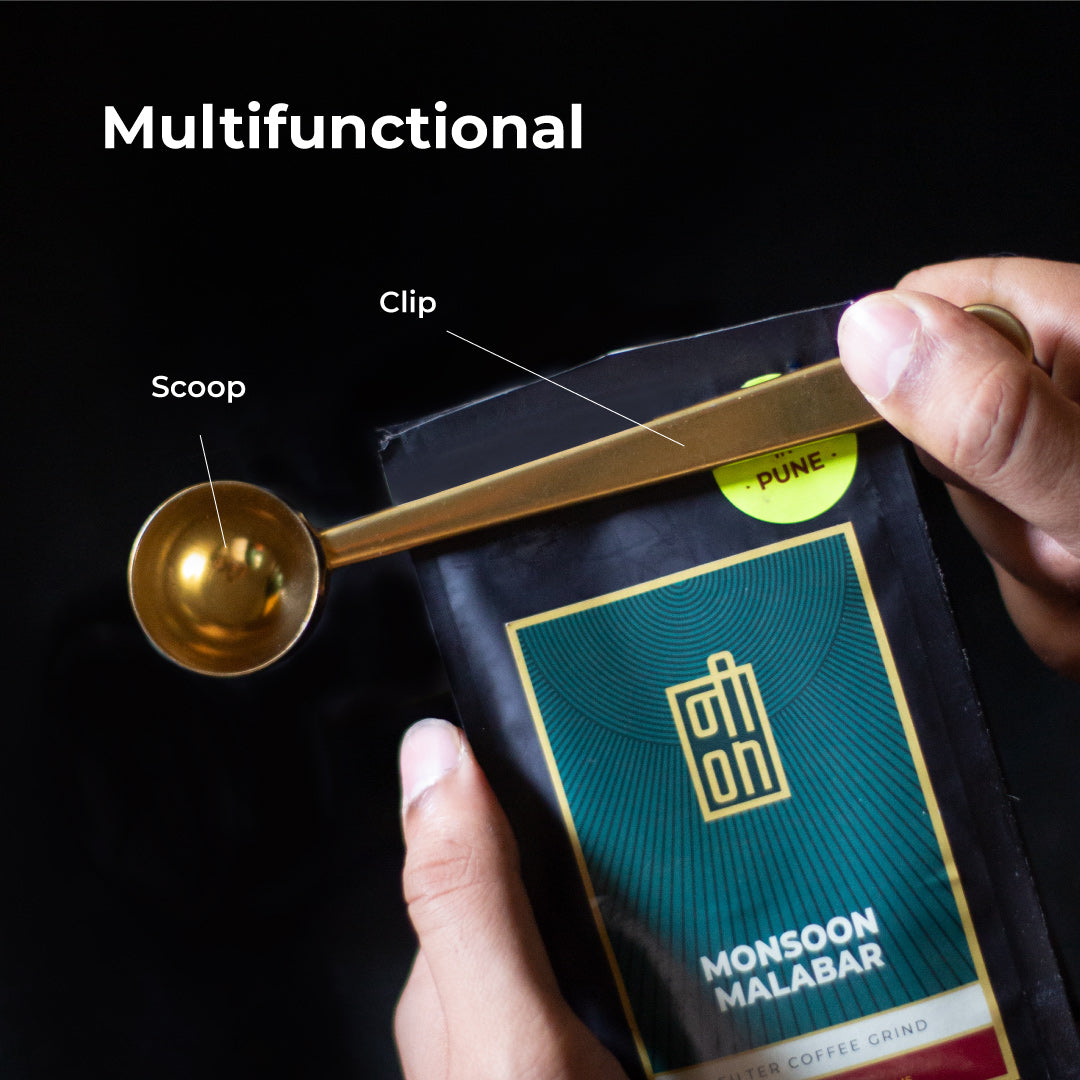 Never misplace your coffee scoop, this one functions as a clip to keep your bag of ground coffee sealed, fresh, and always to hand. All you need to do is open, scoop and clip. A must-have kitchen tool for every coffee lover!