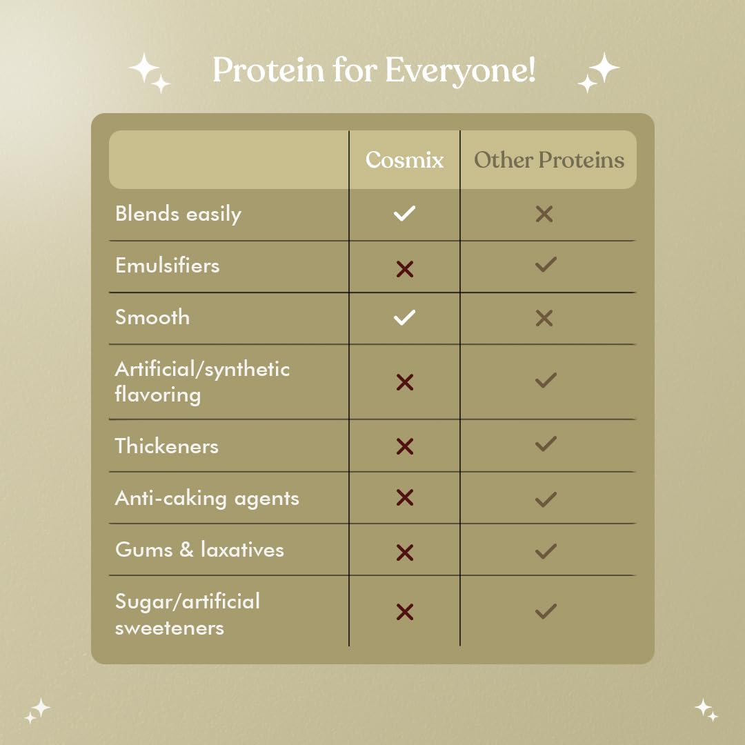 • At Cosmix, we are constantly innovating and coming up with new flavors that can help every individual enjoy the process of taking protein powders. We have flavors like Cocoa Beet, Indonesian Cacao (delicious chocolate), Japanese Ceremonial Matcha, Chikmagalur Mocha (coffee + chocolate), Mint Cacao (mint chocolate), Kerala Vanilla Bean, Mahabaleshwar Strawberry and Vanilla Latte