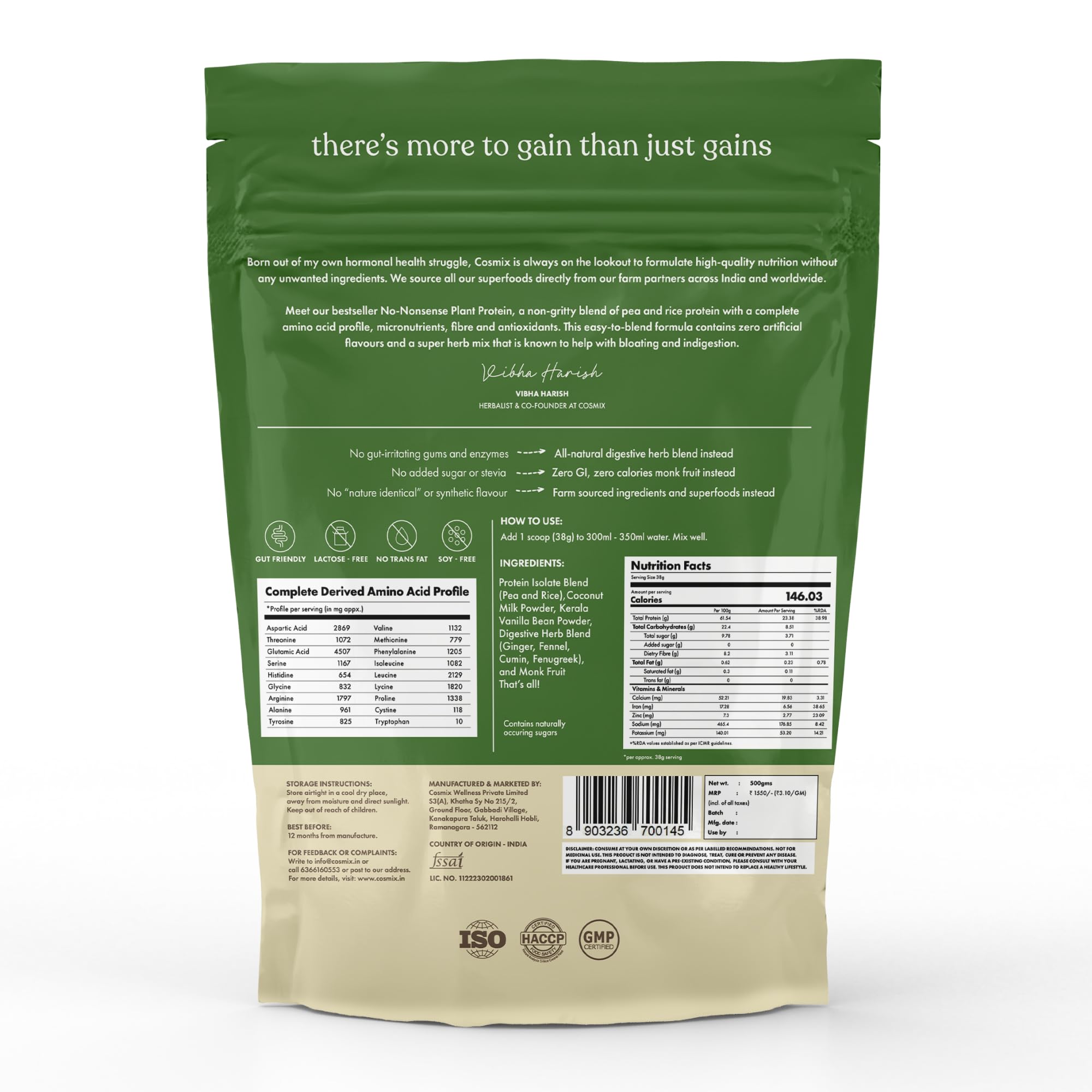 • Meet the cleanest no-nonsense plant protein: No-Nonsense Plant Protein by Cosmix truly stands by its name.