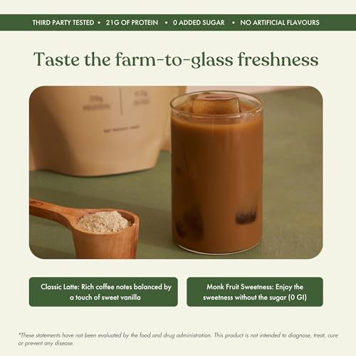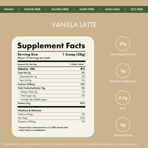 Pea Protein Isolate, Rice Protein Isolate, Coconut Milk Powder, Digestive Herb Blend (Ginger, Fennel, Cumin, Fenugreek), Arabica Coffee, Kerala Vanilla Bean Powder, Monk Fruit.