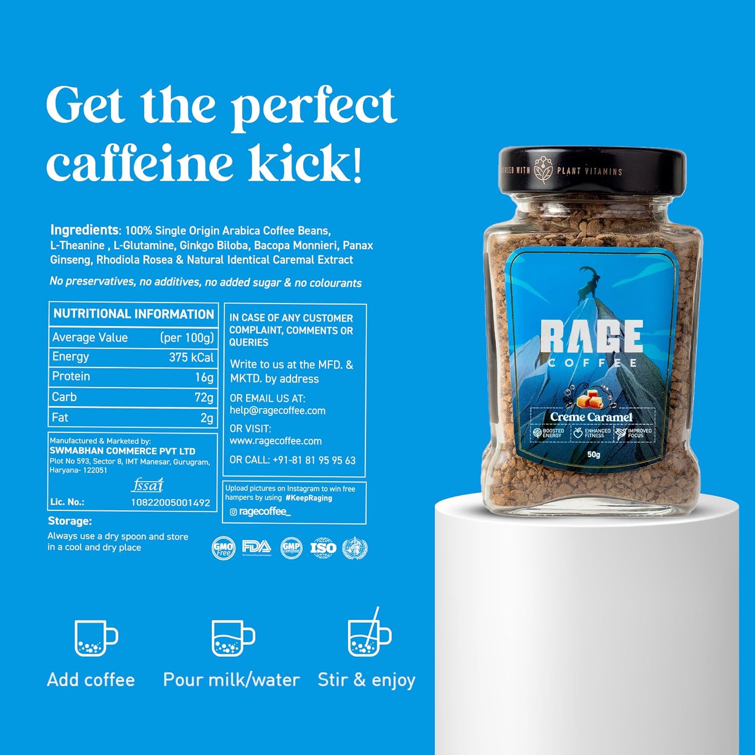 Low Calorie: Each serving contains less than 5 calories and 90-120 mg of caffeine.