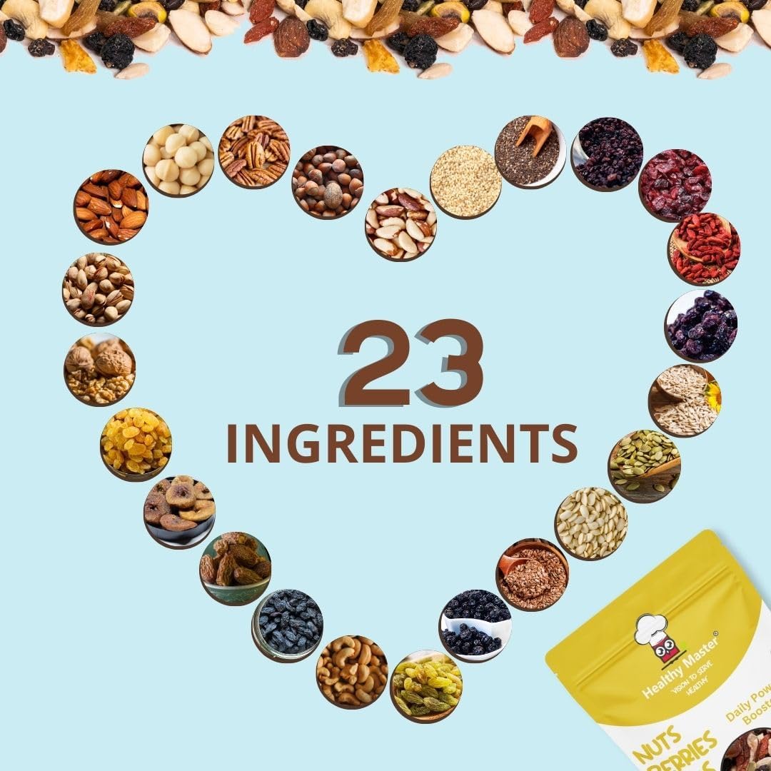 • Why Healthy Master Power Booster? This 23+ ingredient mix constitutes world-class internationally sourced Naturally Sun Dried nuts, seeds, berries and fruits.