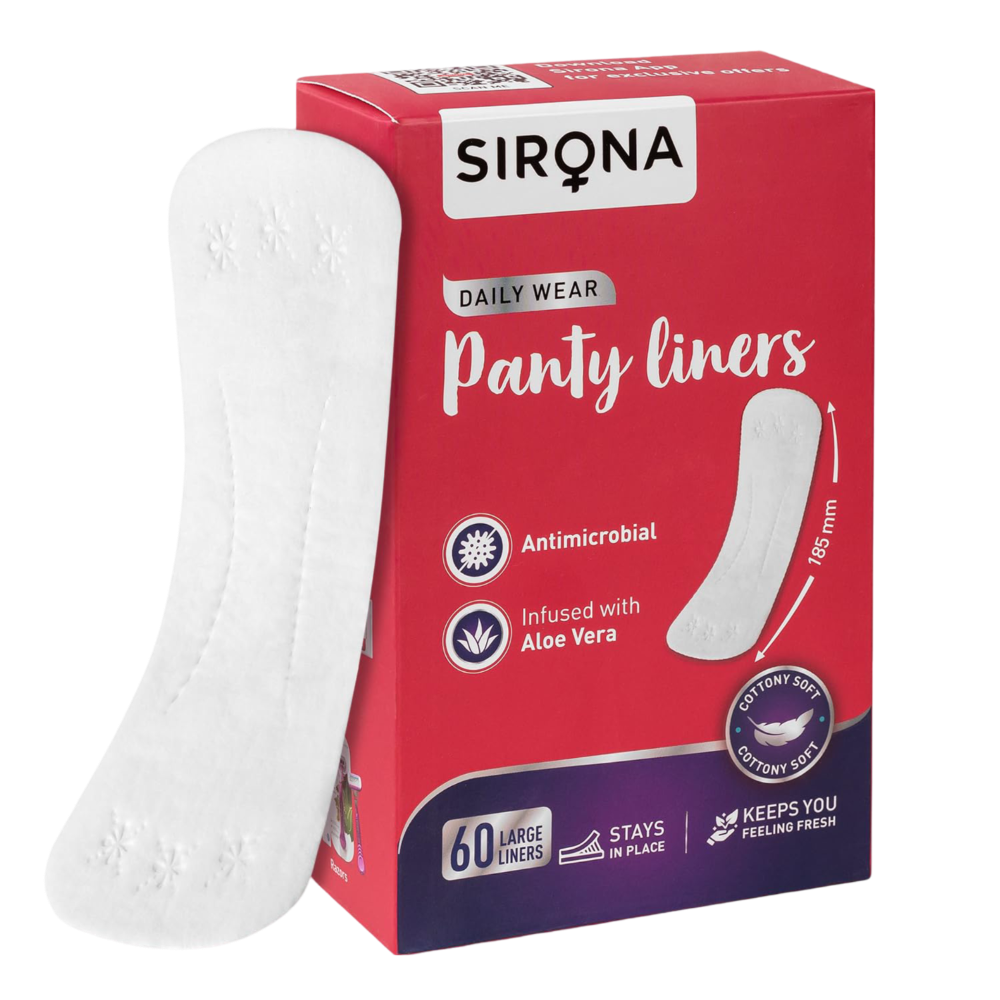 • Sirona panty liners provide up to 8 hours of protection, allowing you to feel fresh and carefree throughout the day.