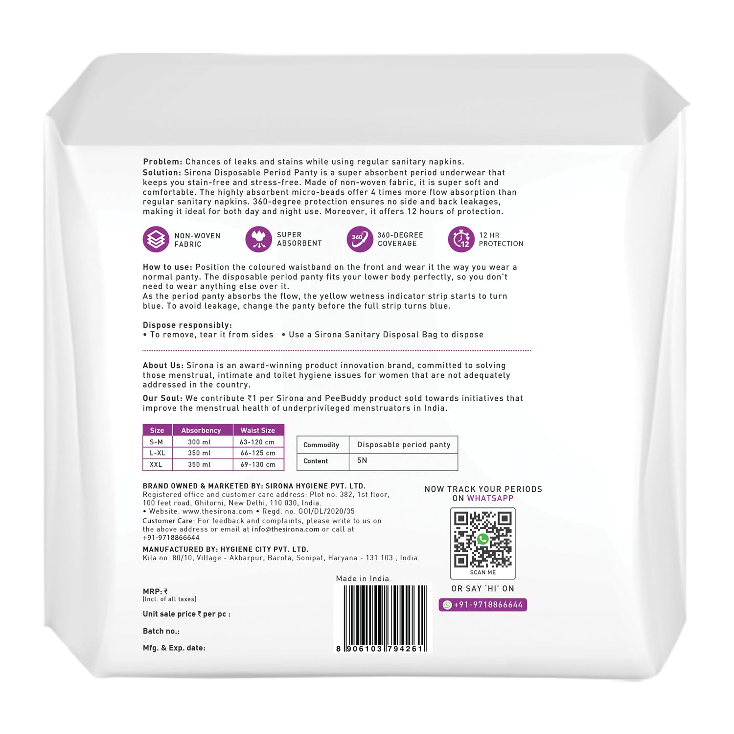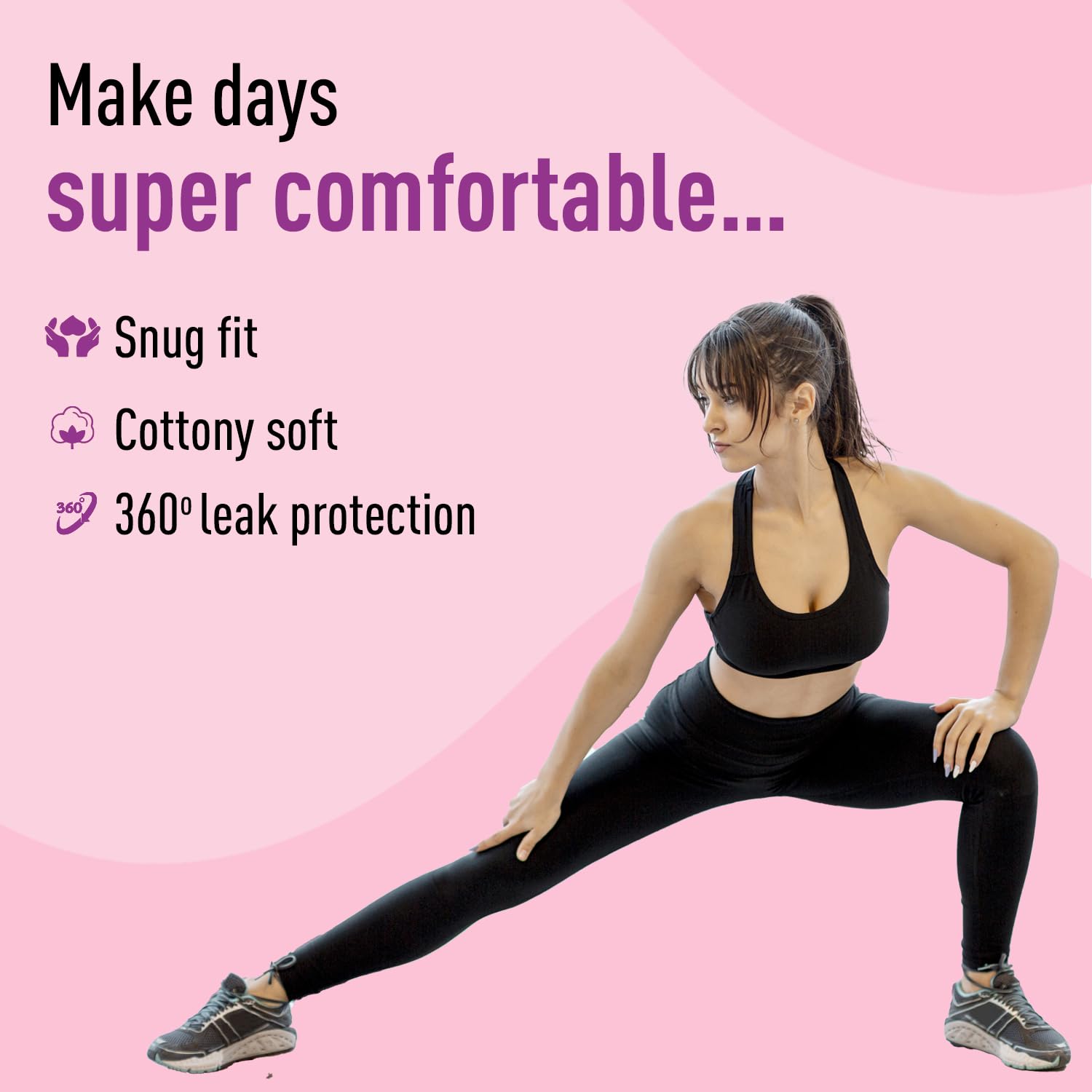 • The panty provides comprehensive coverage to prevent side and back leakage, keeping you stress-free and stain-free.