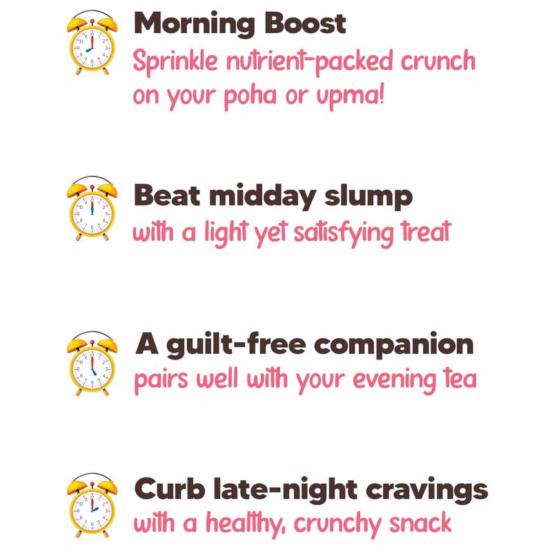 Expertly made with tangy mango achaari for a chatpata taste, roasted in sunflower oil instead of palm oil. Offers a delicious, crunchy alternative to Chivda/Bhujia & chips, making it perfect for on-the-go, lunchboxes, or snacks.