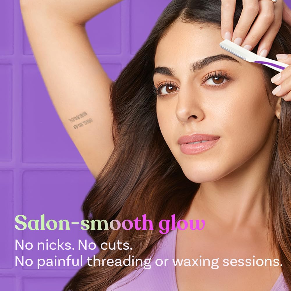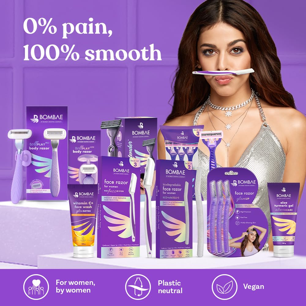 • SALON-SMOOTH SKIN: Get parlor-finish for eyebrows, forehead, upper lips, lower lips, chin, peach fuzz & sideburns with Bombae face razor