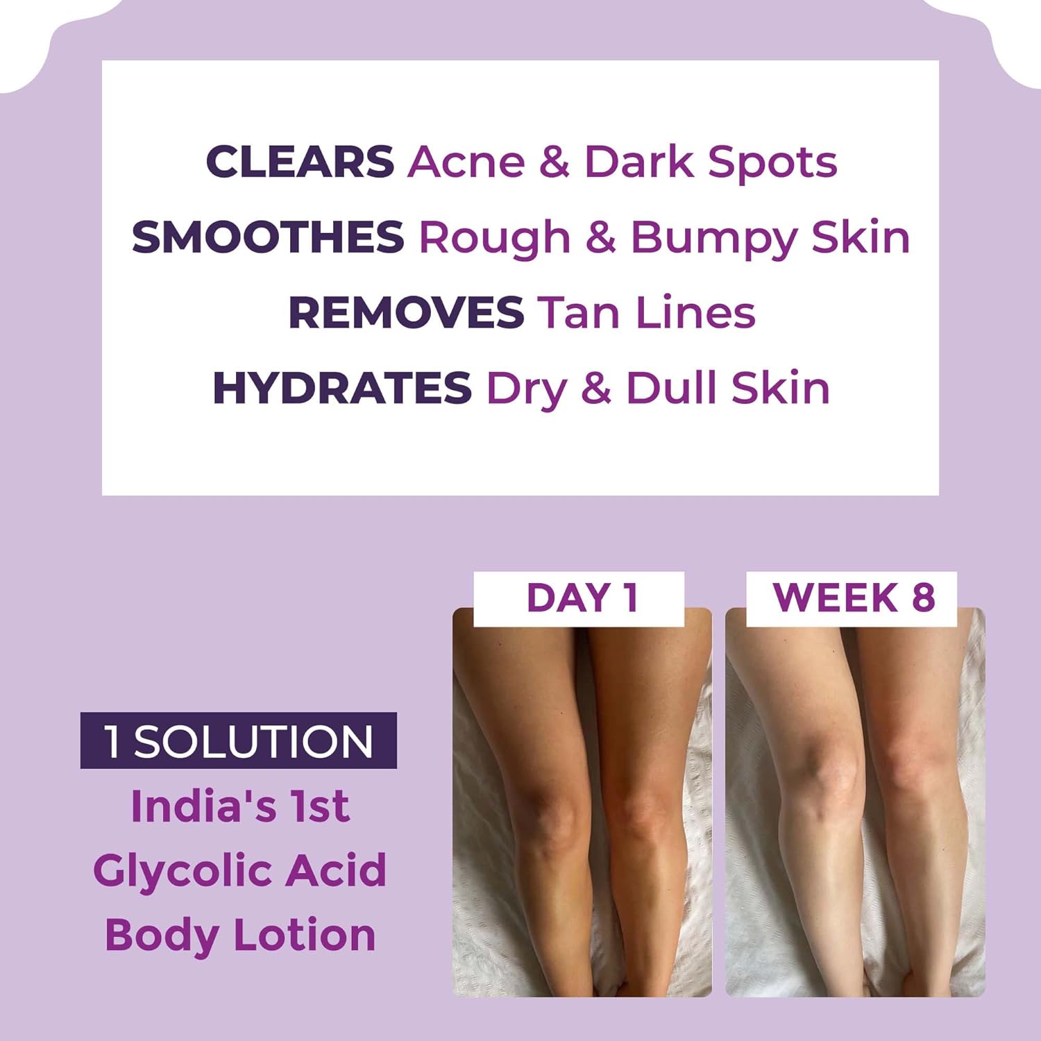 Introducing our Clear & Confident Glycolic Acid Body Lotion, a staple for sun-damaged, tanned skin. With Glycoclear Technology and AHA's like Lactic Acid and Glycolic Acid, it promotes clearer, softer skin, reducing rough bumps and body acne. Say goodbye to skin concerns and hello to Clear & Confident skin with every application!