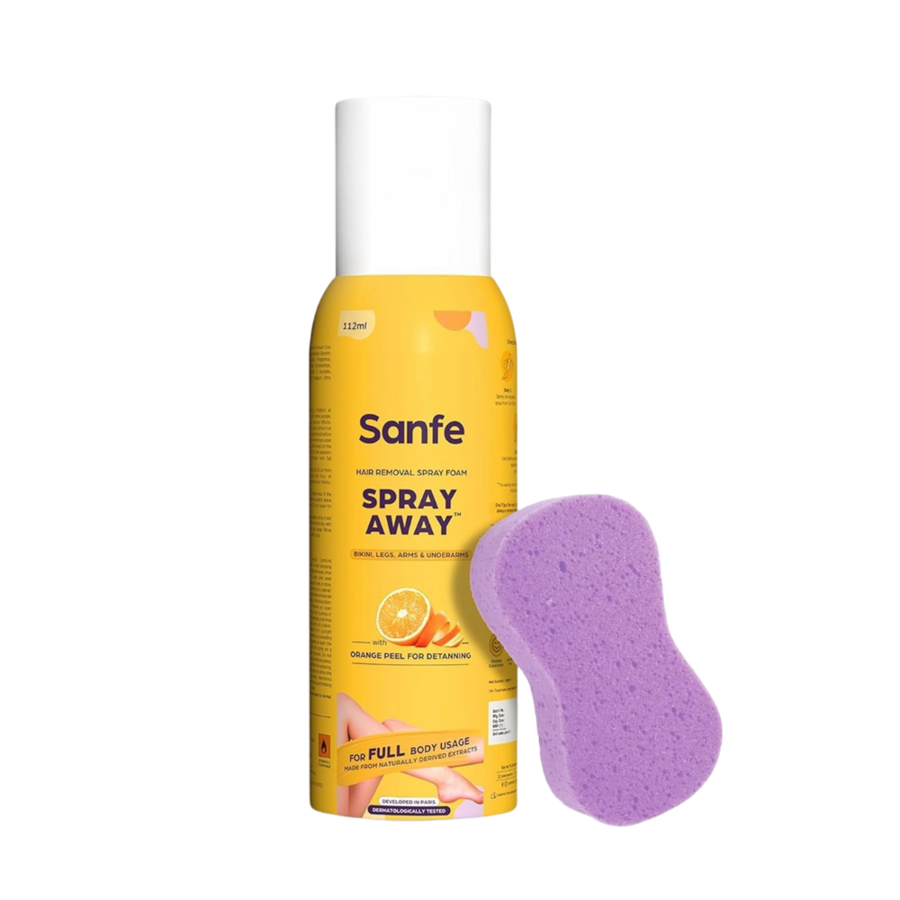 Sanfe Spray Away Hair Removal Spray offers a pain-free solution to eliminate unwanted hair from various body parts like legs, arms, and underarms. This convenient and time-saving spray provides quick results without causing irritation or redness, thanks to its gentle formula. Infused with orange peel extract, it also helps remove tan, leaving the skin looking brighter and smoother. With this hair removal spray, you can achieve smooth, hair-free, and radiant skin in just a matter of minutes. Say goodbye to unwanted body hair without experiencing any pain!