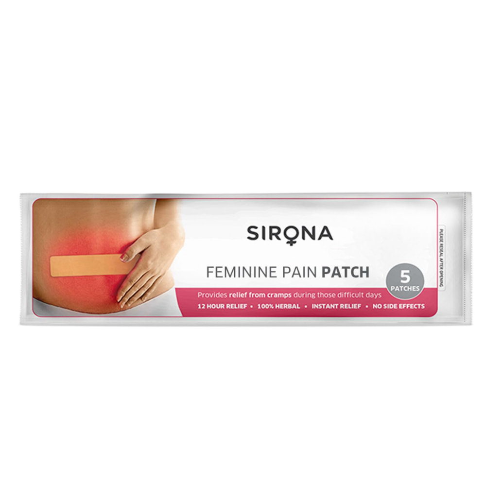 Sirona Pain Relief Patches are designed to provide immediate and lasting relief from period cramps. The herbal formula provides pain relief to the muscles and joints of the abdomen, back and legs.