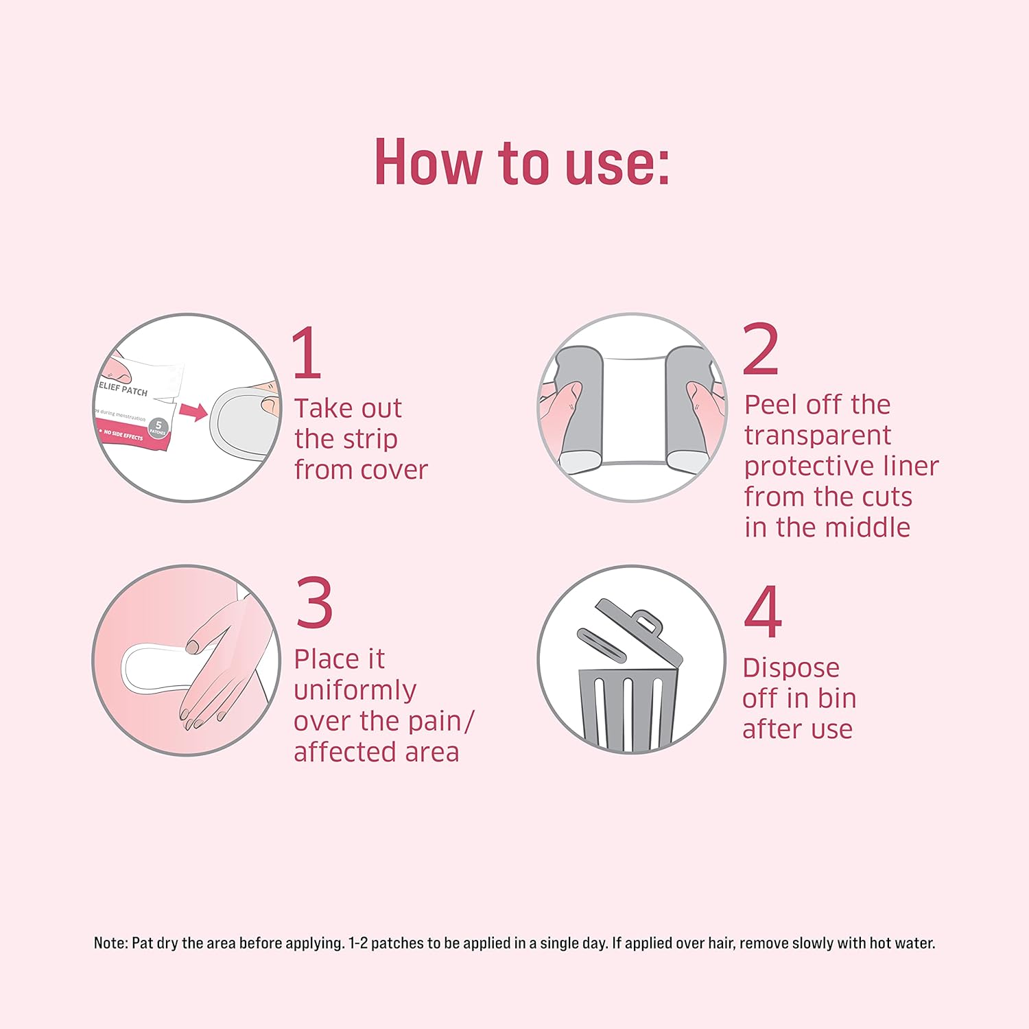 • The patches provide immediate and lasting relief from menstrual cramps and pain in the abdomen, back, and legs.