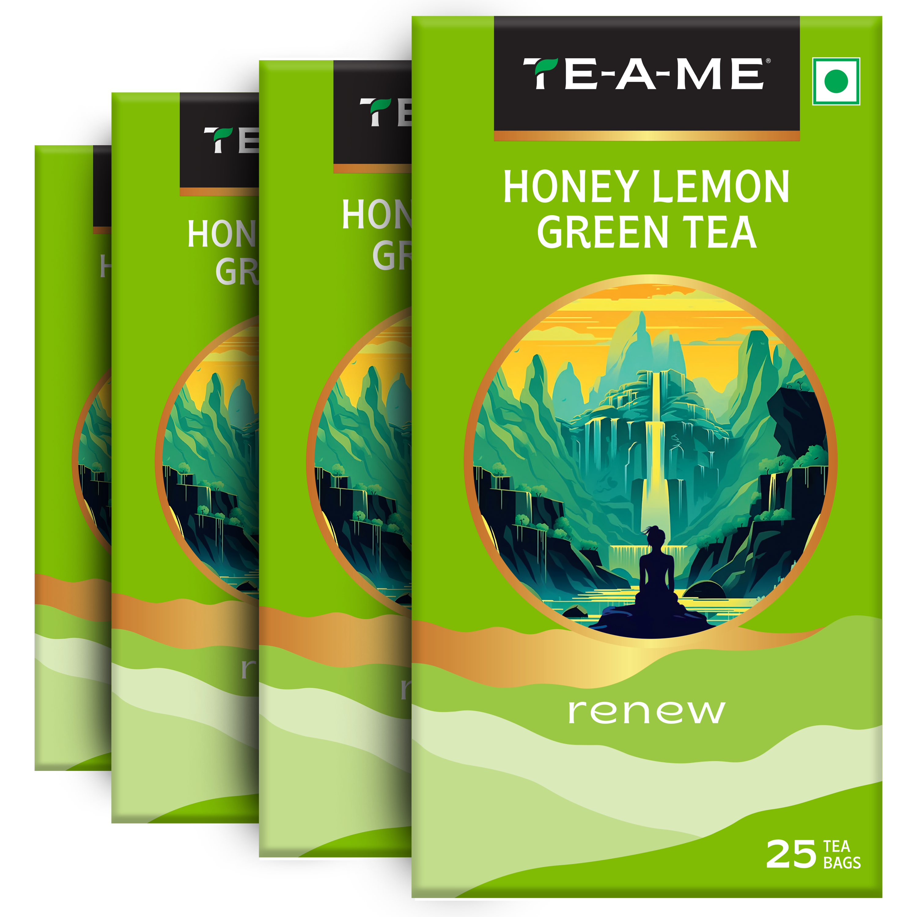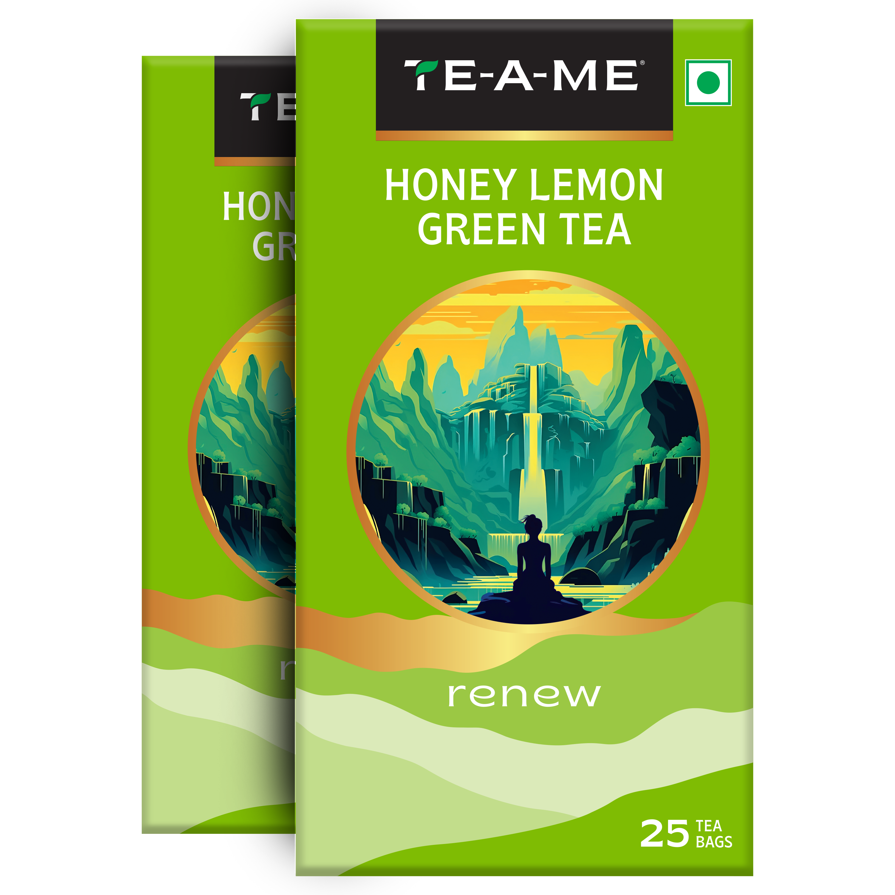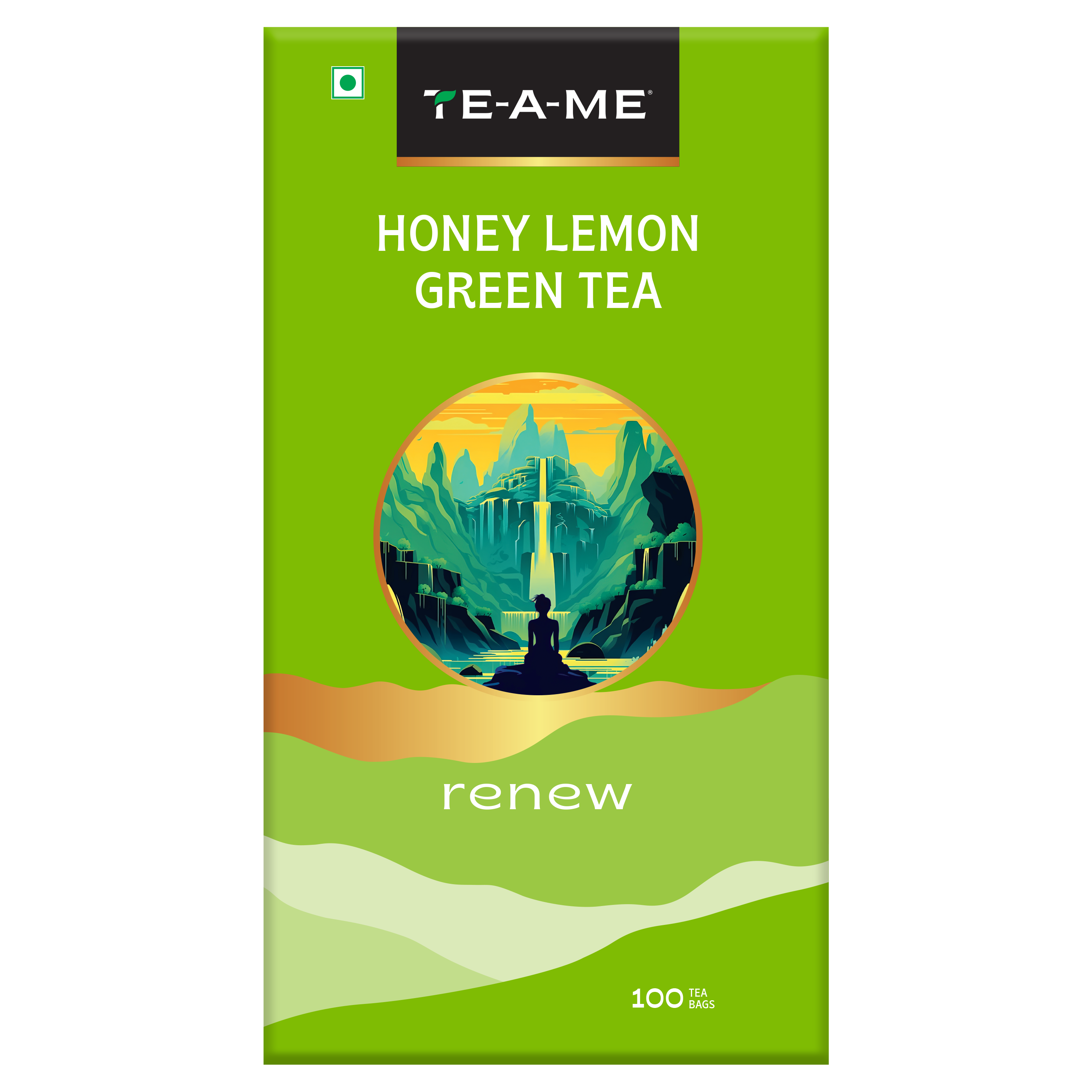 Embrace approach to wellness with TE-A-ME Renew Honey Lemon - Green Tea, a testament to vitality. Our blend, featuring 100 green tea bags - lemon & honey(natural flavour)  per pack, serves as your gateway to a good lifestyle. Experience the benefits of green tea for weight loss as you embark on a journey towards well-being. Our special blend contains real Lemon Peel which is source of Vitamin C along with other nutrients. Vitamic C helps in immunity.