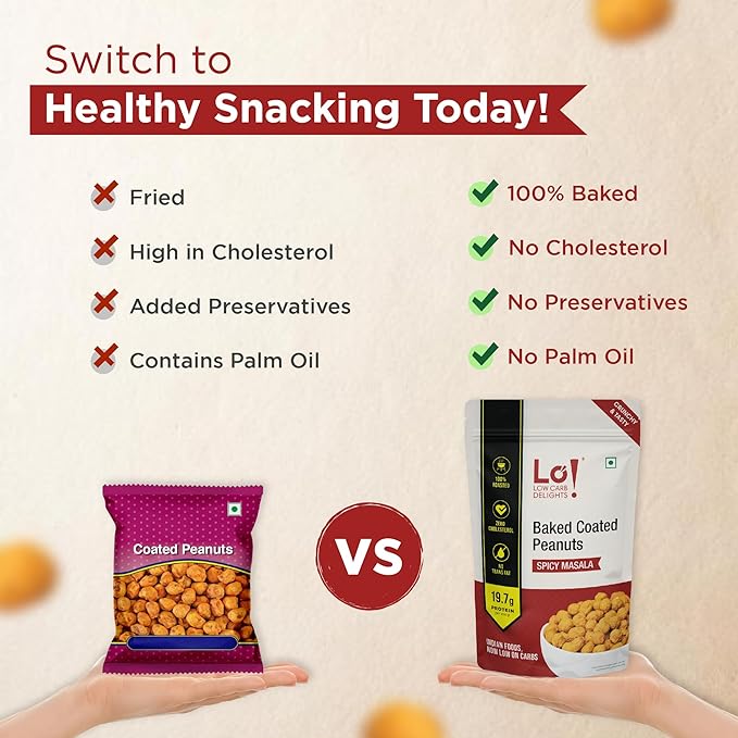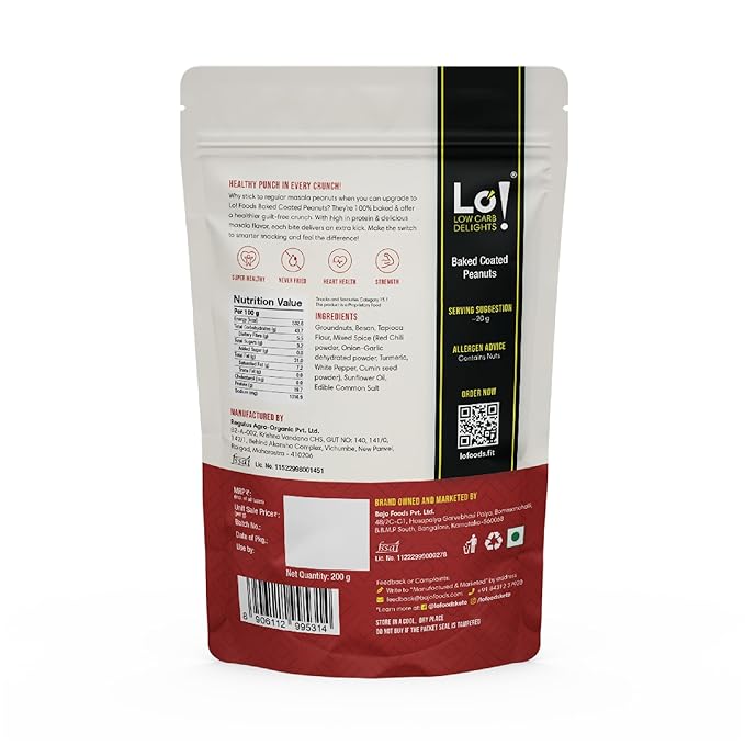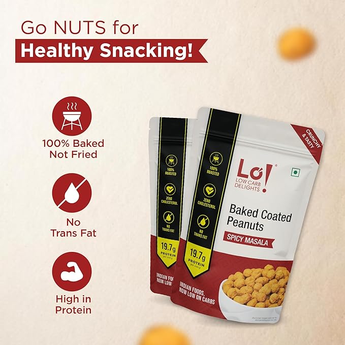 Crunchy & Spicy: Roasted peanuts with baked coated masala for extra crunch and a tangy kick.