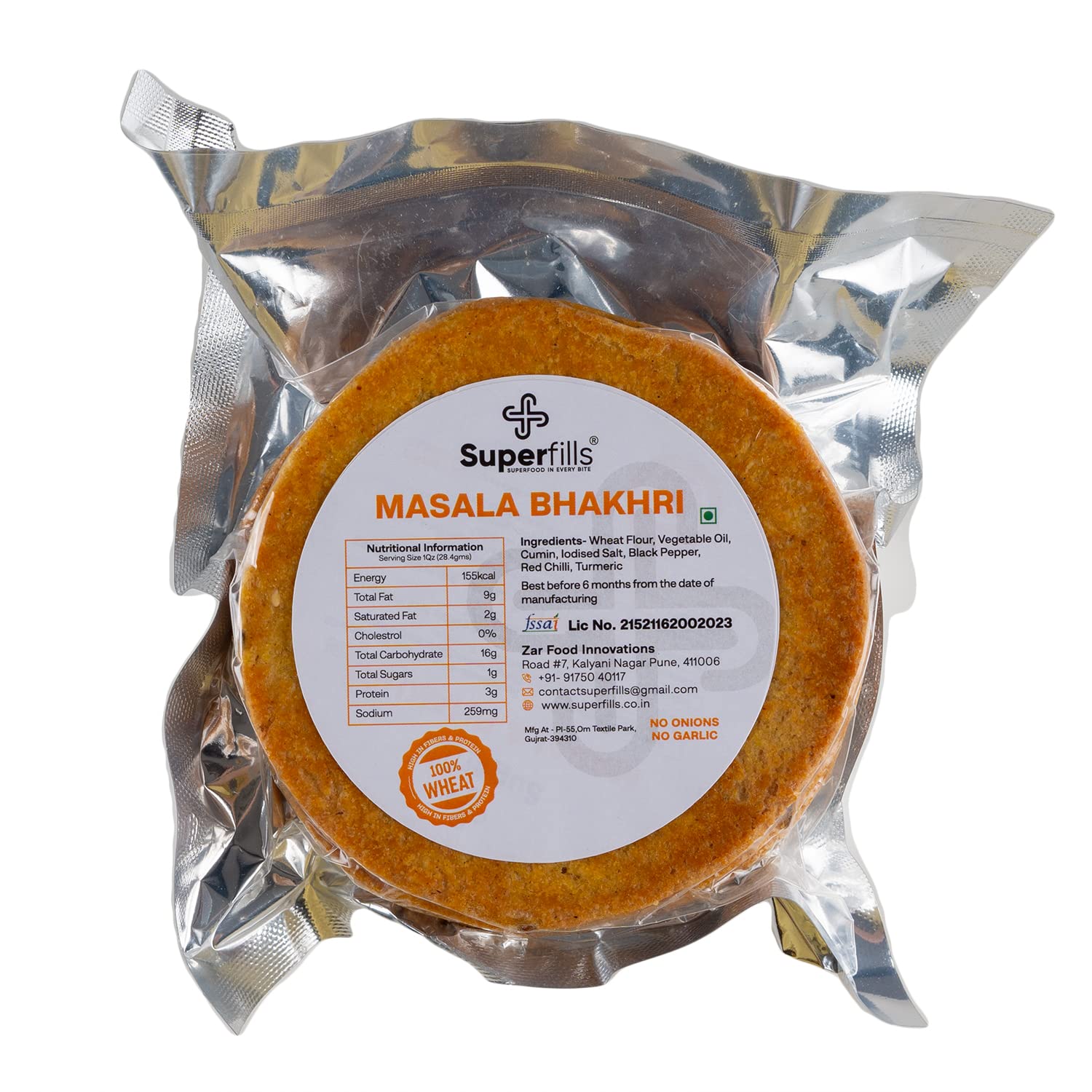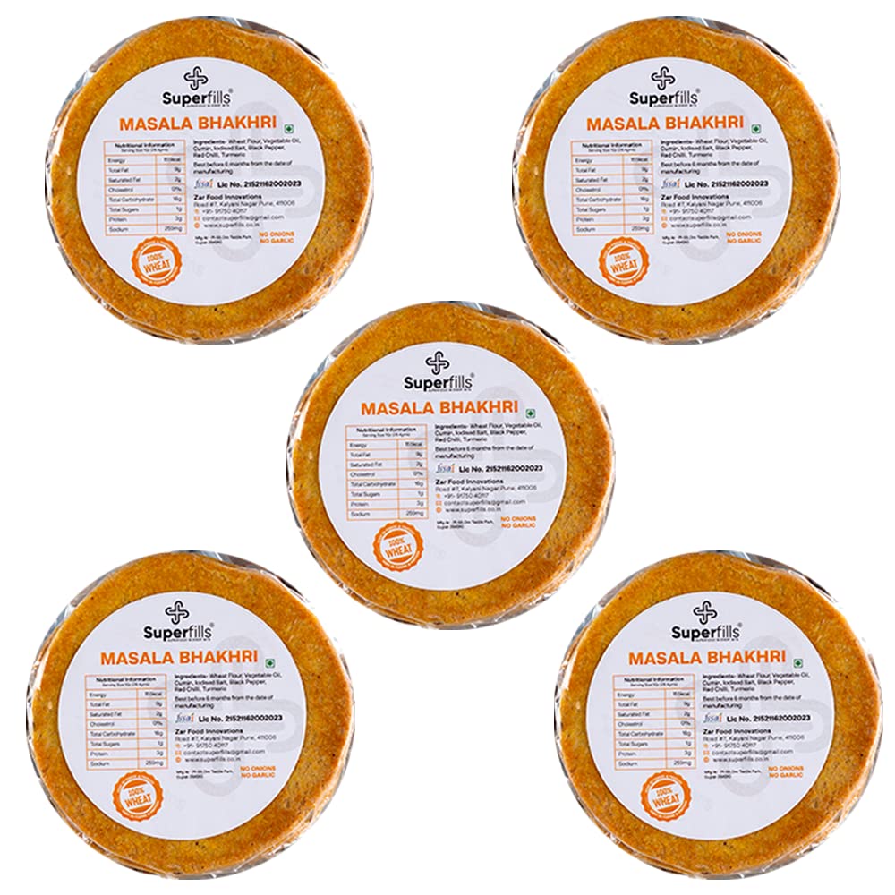 • Superfills Bhakhri are thick wheat based crisps, very biscuity yet not hard . It is a traditional Gujarati Snack made using whole wheat flour & spices.