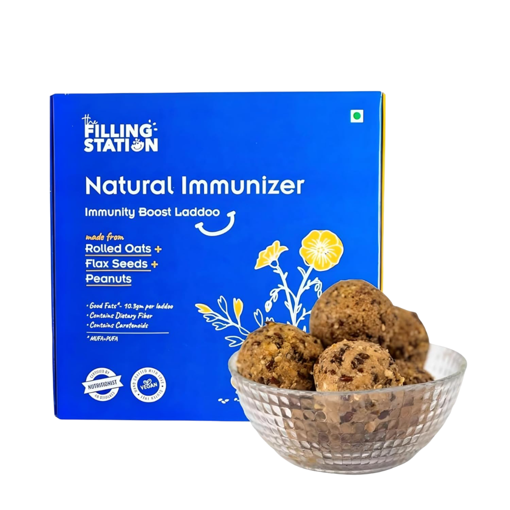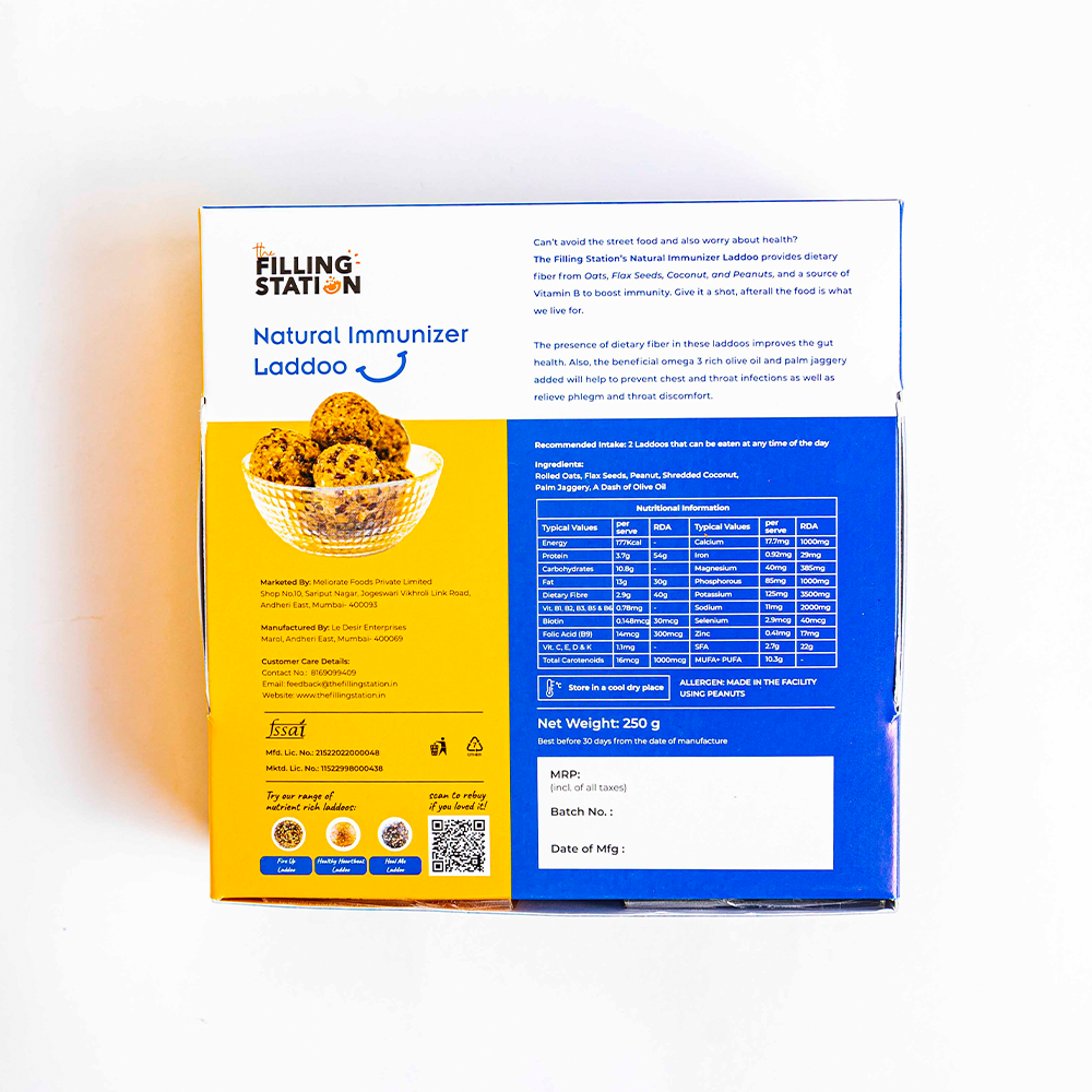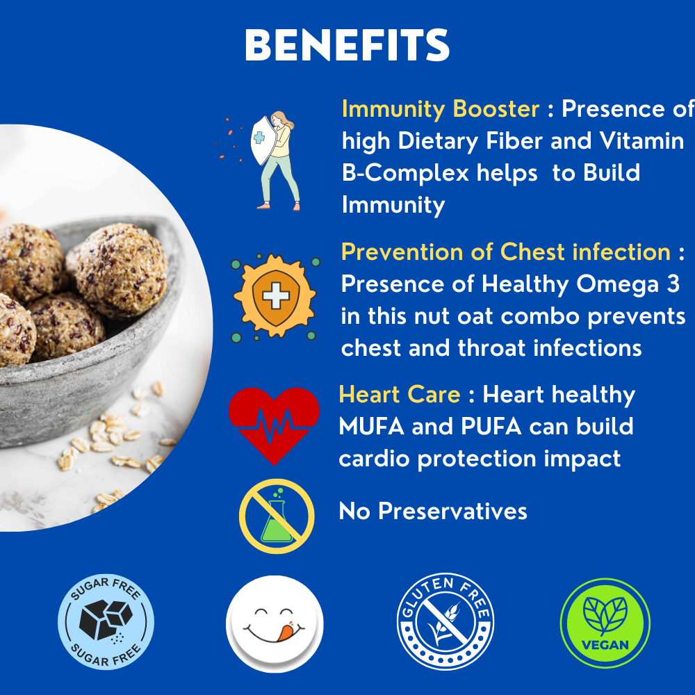 Introducing our Natural Immunizer Oats Flaxseed Laddoo, a nutritious blend of oats, flaxseeds, peanuts, and palm jaggery, free from processed sugar and preservatives. Handcrafted with care, each laddoo offers a perfect balance of flavors and textures, delivering a wholesome treat packed with health benefits. Enjoy these guilt-free indulgences for a quick energy boost or a healthy snack anytime, anywhere.