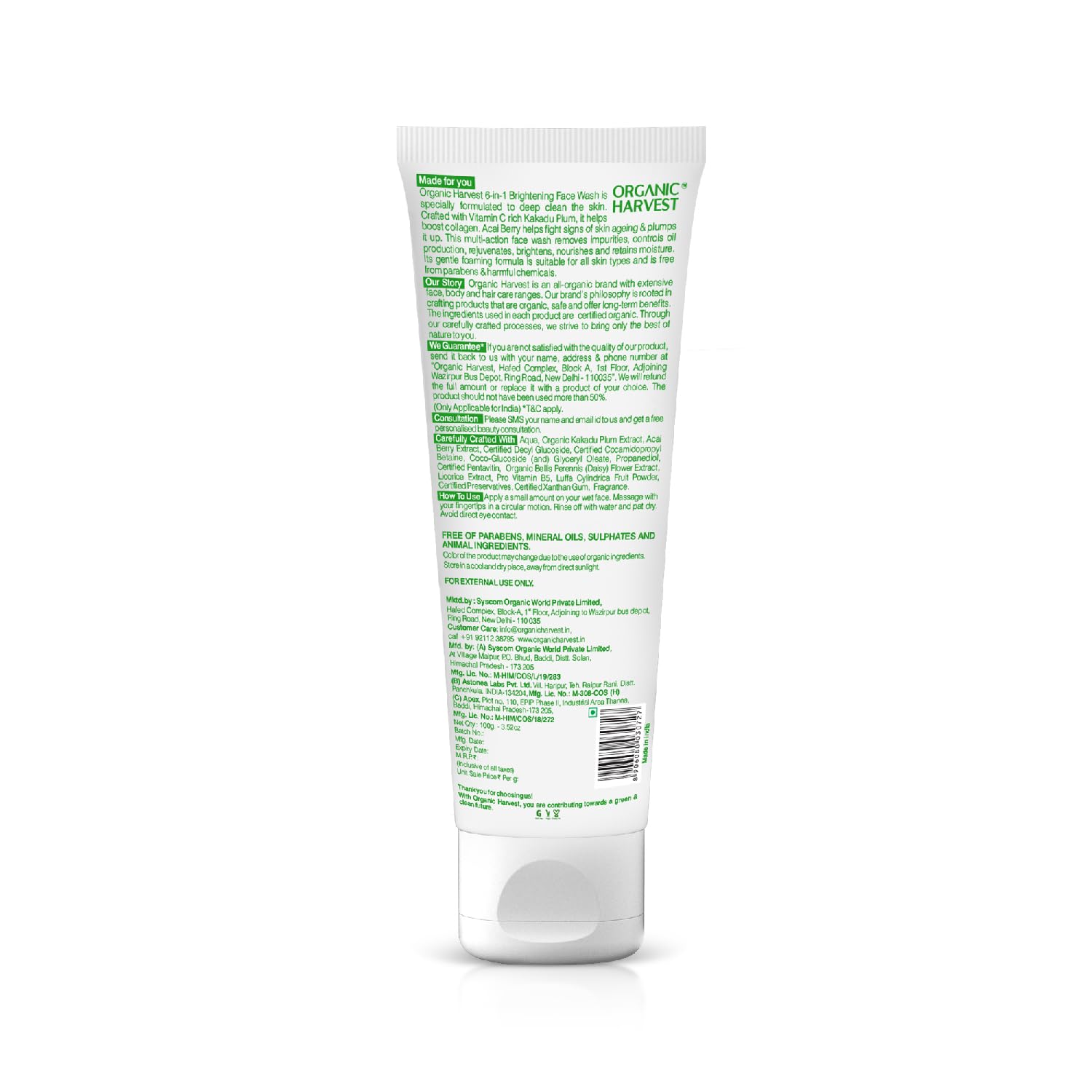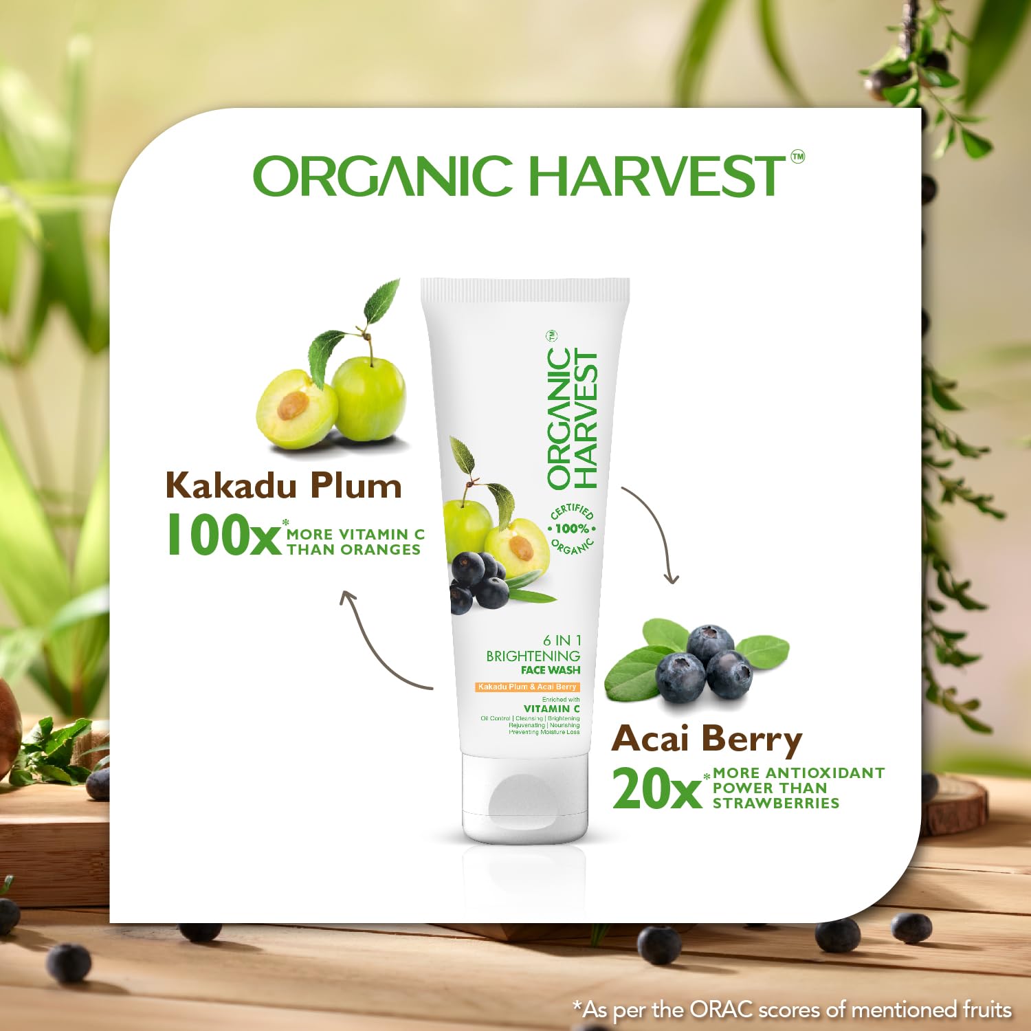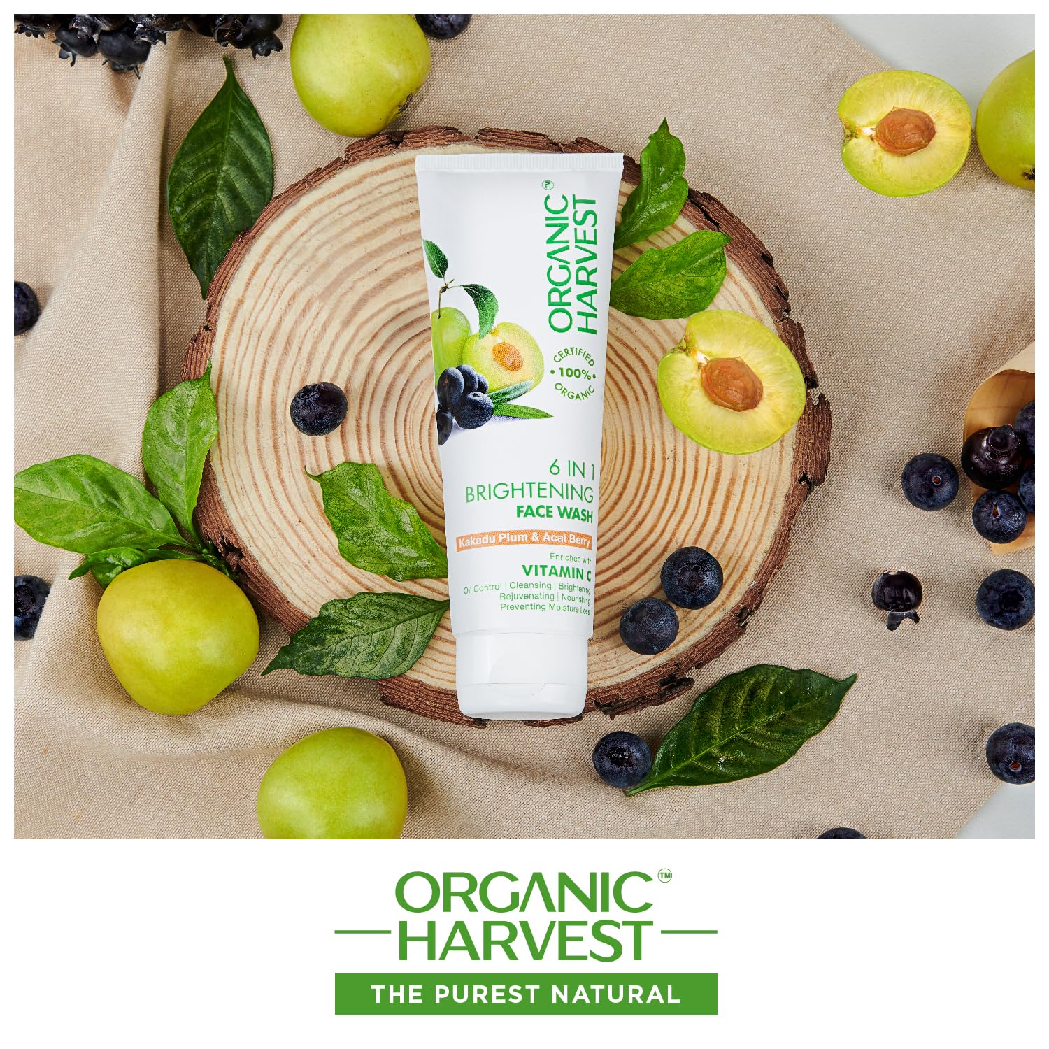 • Deep Cleansing: Organic Harvest 6-in-1 Brightening Face Wash deeply cleanses the skin, removing dirt and impurities while unclogging pores.