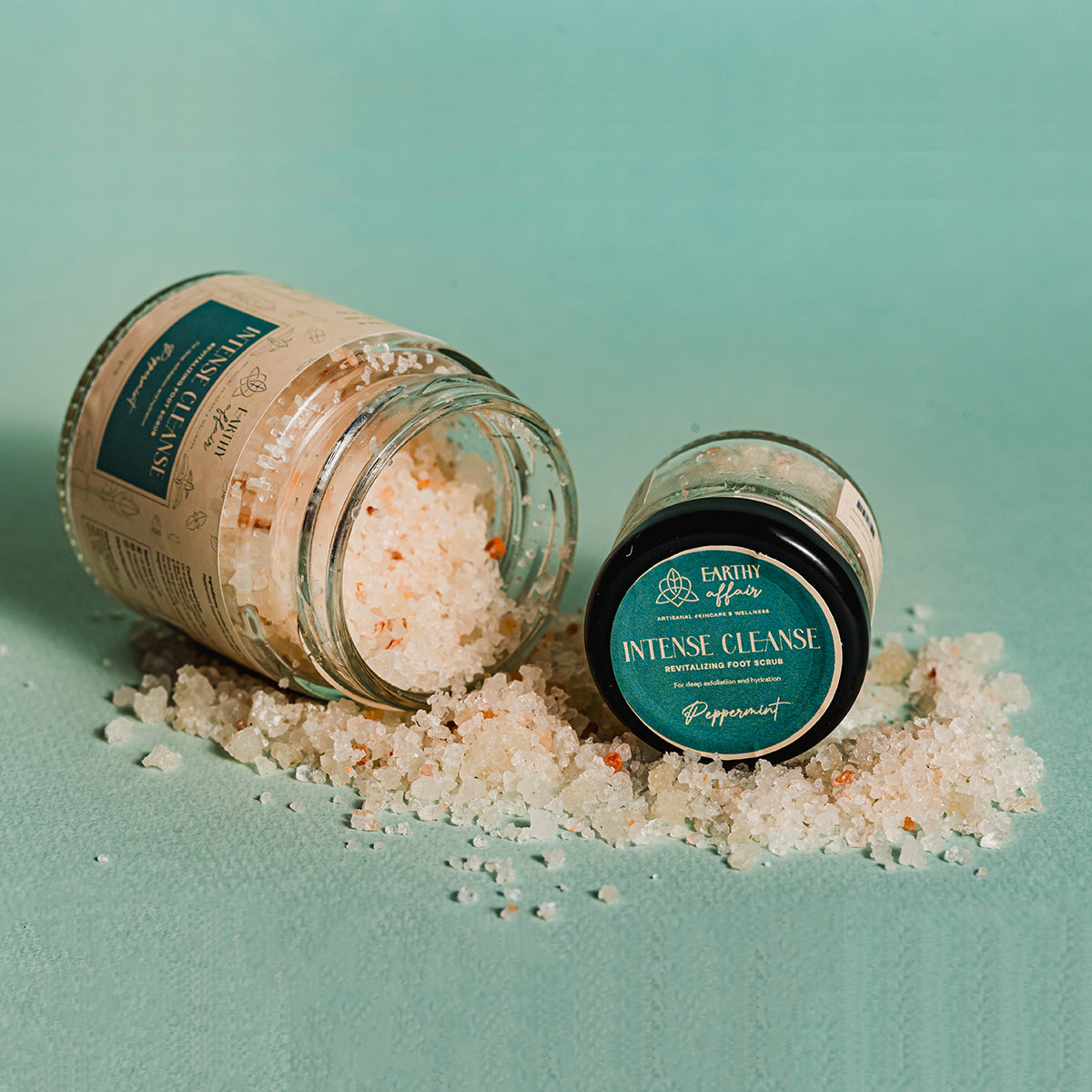 Salt is a great exfoliator. It works wonders for your feet by removing hardened, dead skin cells and calluses while also revitalizing tired soles. The invigorating power of peppermint combined with the soothing coolness of eucalyptus also makes your feet smell great.