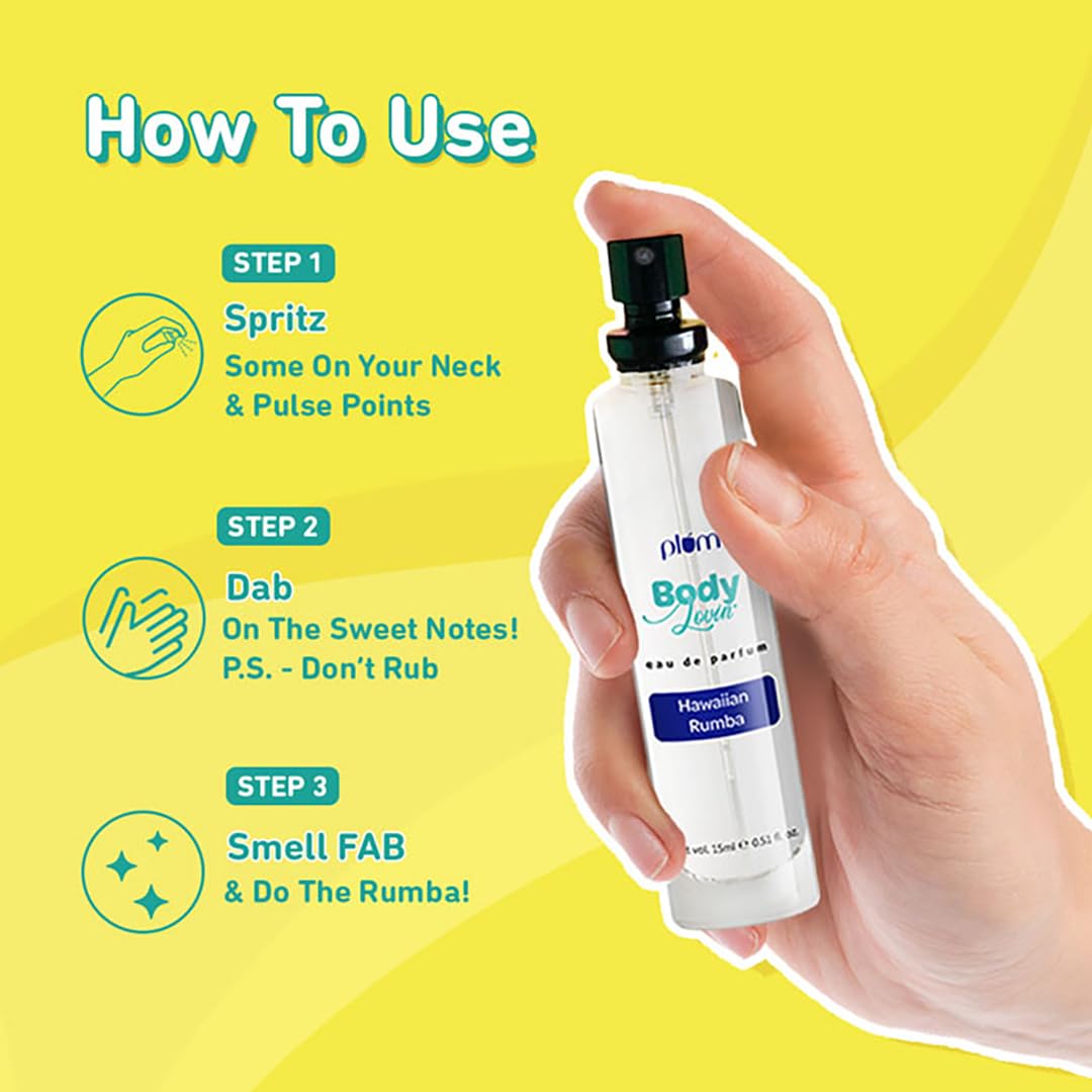 Plum BodyLovin' Hawaiian Rumba Eau De Parfum| Long Lasting & Premium Beachy Fragrance | Luxury Perfume For Women & Men | Mandarin, Gardenia & Vanilla Notes | Travel-Friendly | High On Fun (15 ml)