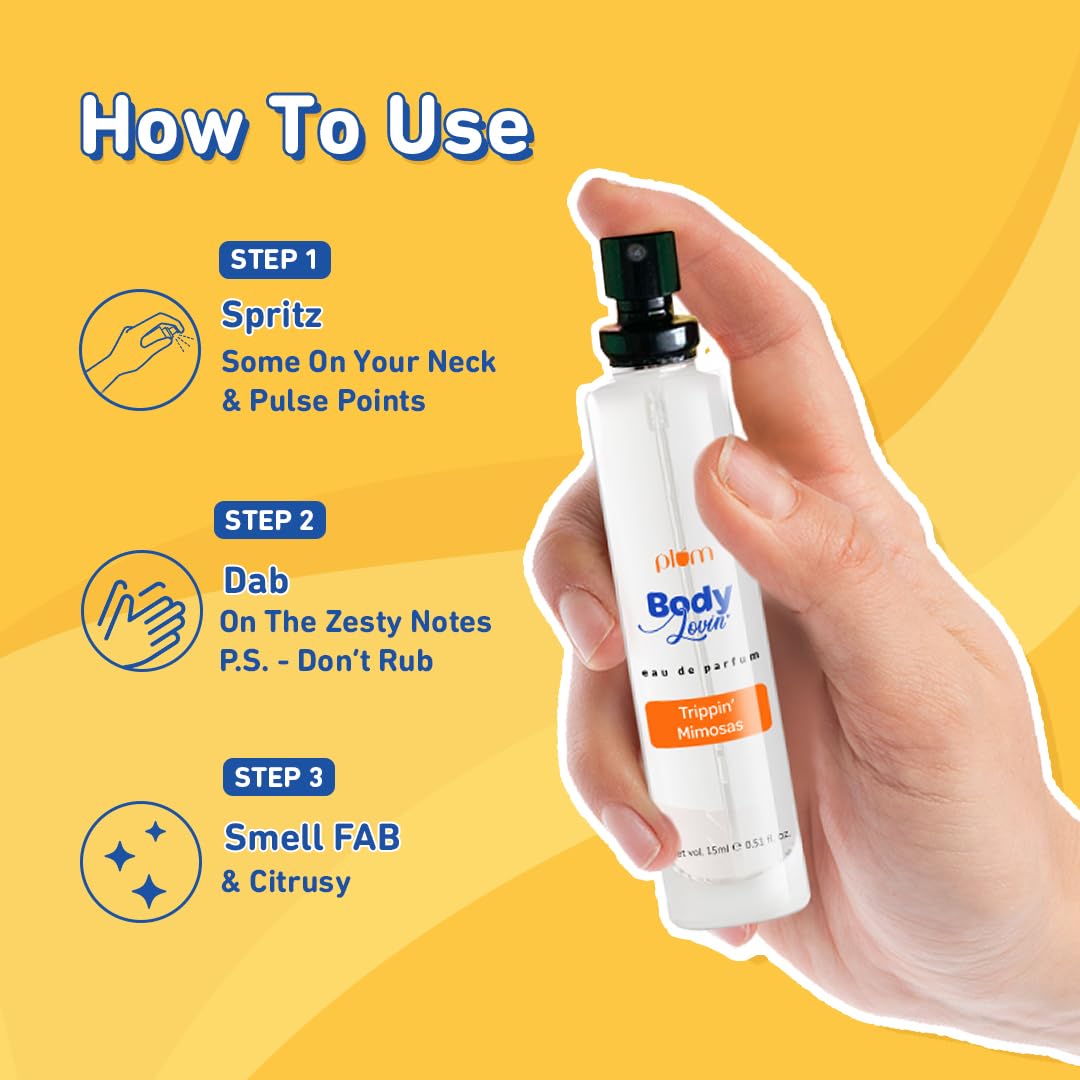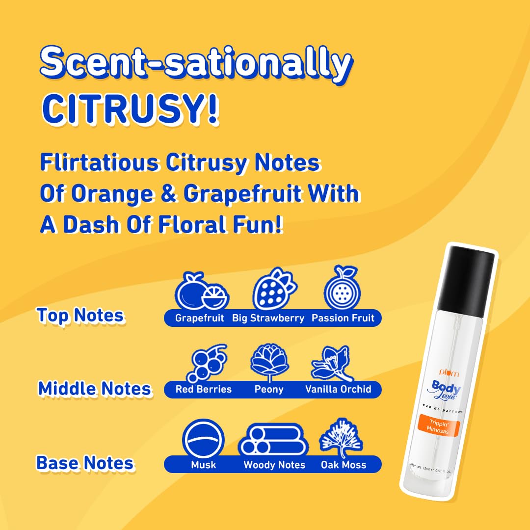 • Plum BodyLovin' Trippin' Mimosas Eau De Parfum| Long Lasting & Premium Citrusy Fragrance | Luxury Perfume For Women & Men | Grapefruit, Berries & Vanilla Notes | Travel-Friendly | High On Fun (15 ml)