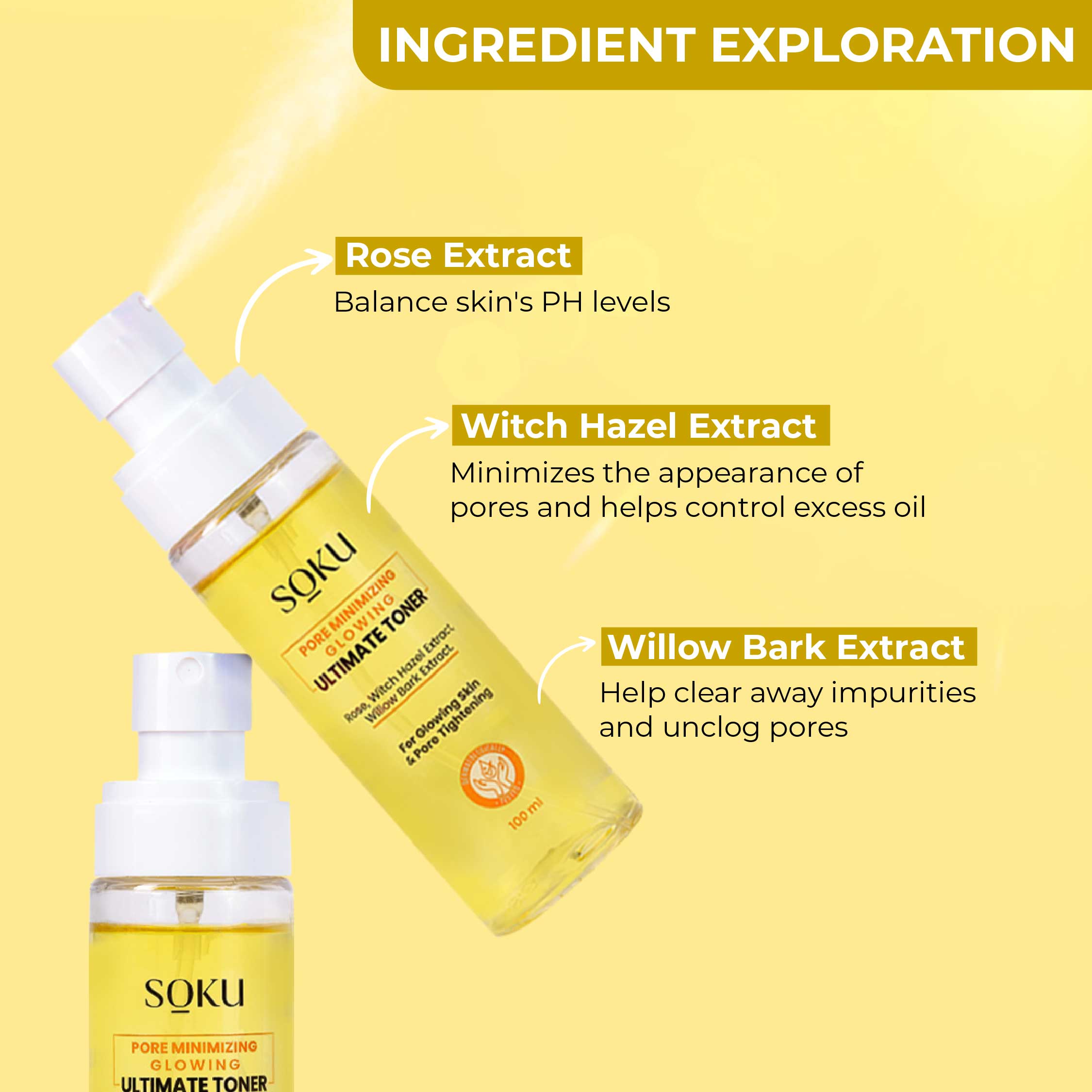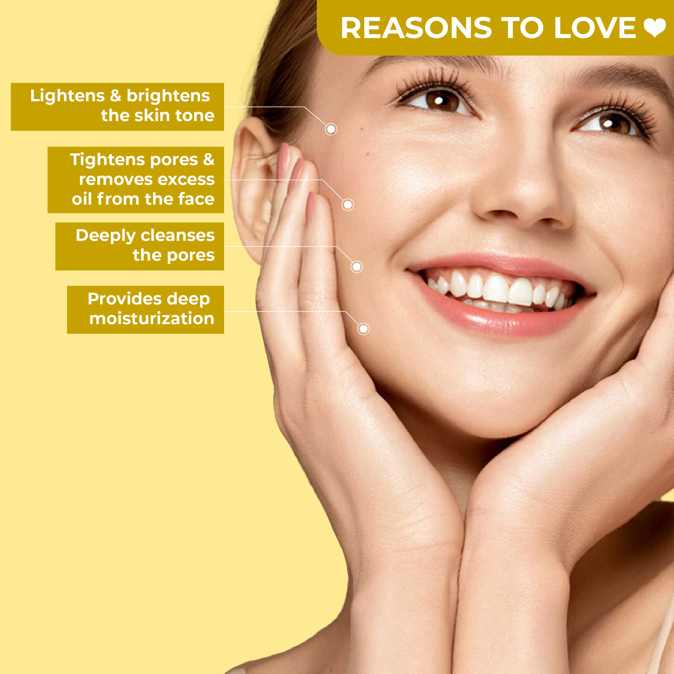 • Let the astringent properties of Witch Hazel work wonders as it minimizes the appearance of pores and helps control excess oil, promoting a smoother and more refined texture.