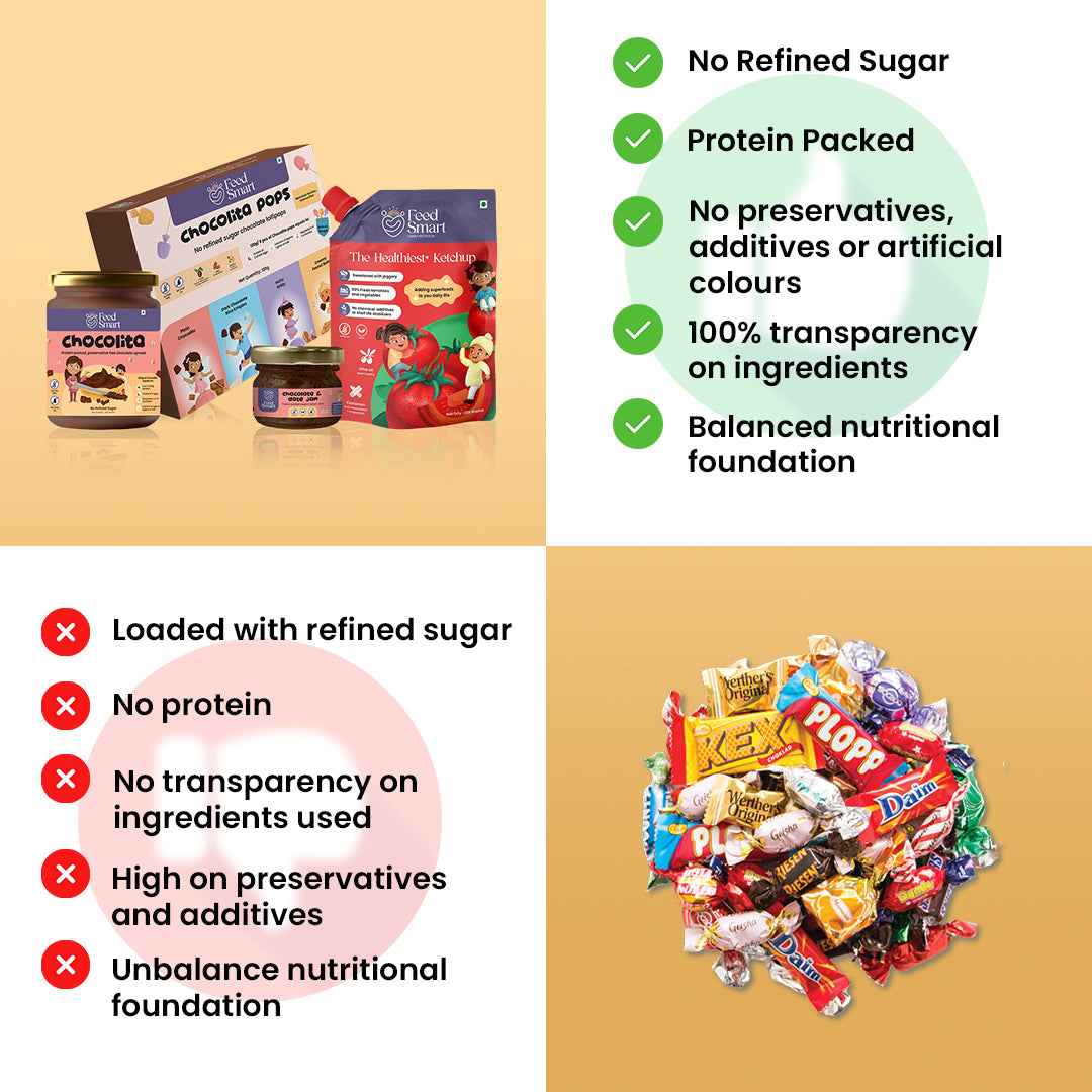 Made from farm-fresh, red-ripe tomatoes and vitamin-rich jaggery, this kid-friendly ketchup is a family favorite. Kids love its naturally sweet flavor, while parents appreciate the extra nourishment during snack time.