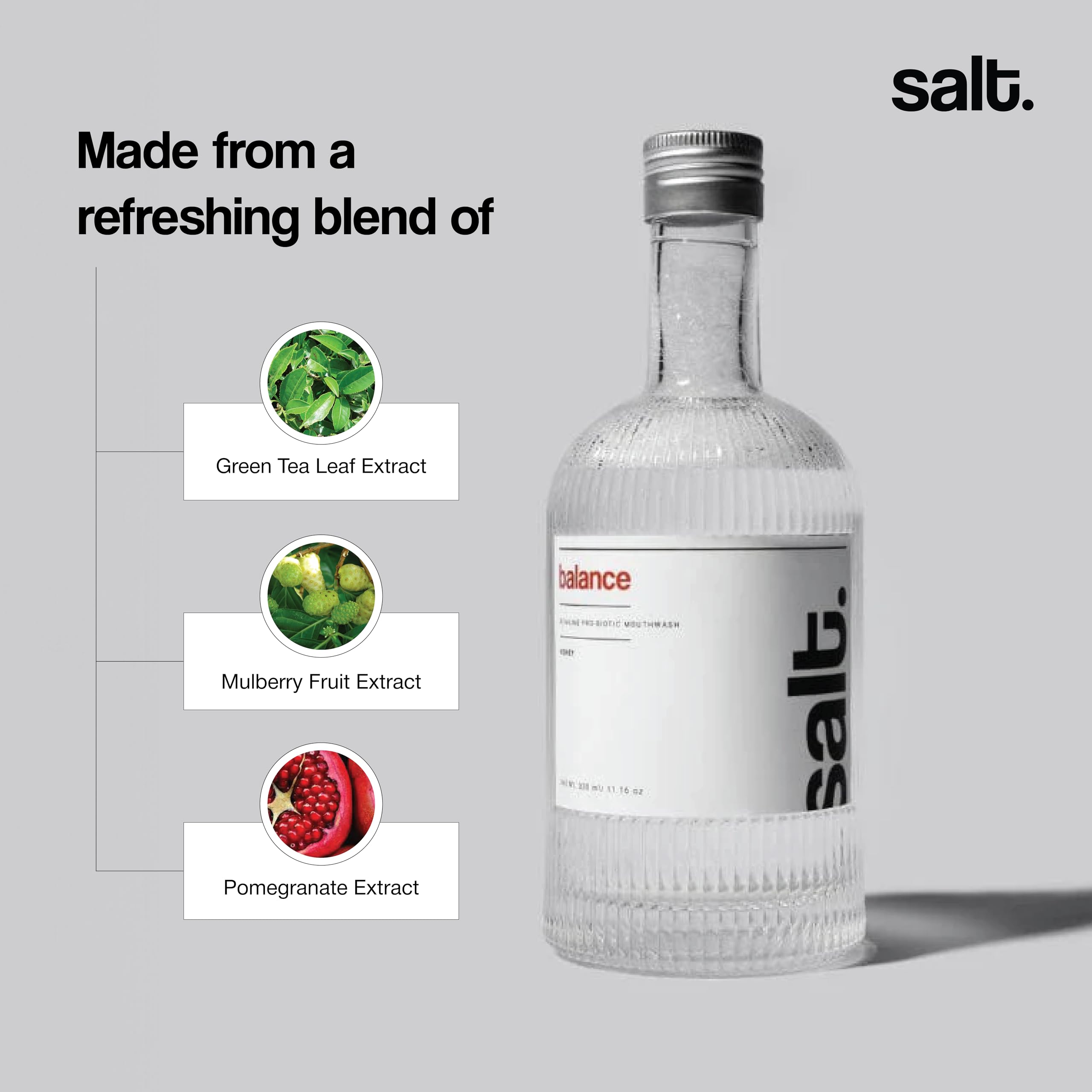 • Protective Oral Care: Balance is an FDA, GMP and ISO Certified Mouthwash in 100% Recyclable Packaging. Salt offers an Eco-Friendly Oral Care with Trusted Quality.