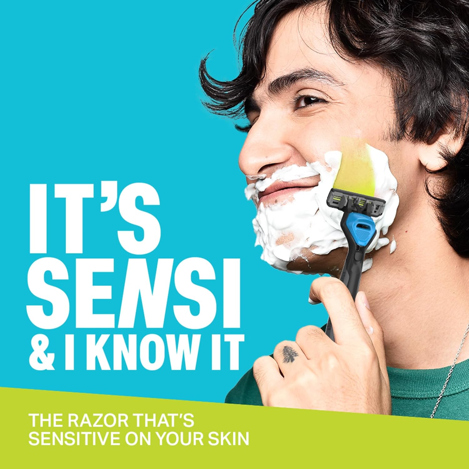 • SAY GOODBYE TO OVERPRICED RAZORS: With SENSI Smart3 you have access to the best in-class performance of a 3-blade razor at a super competitive price. Doesn’t burn holes in your pocket, only delivers smooth shaves.