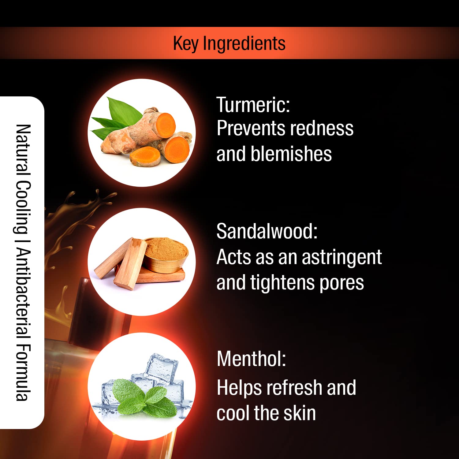• This lotion helps to reduce shave irritation by using Turmeric and Sandalwood to calm your skin.