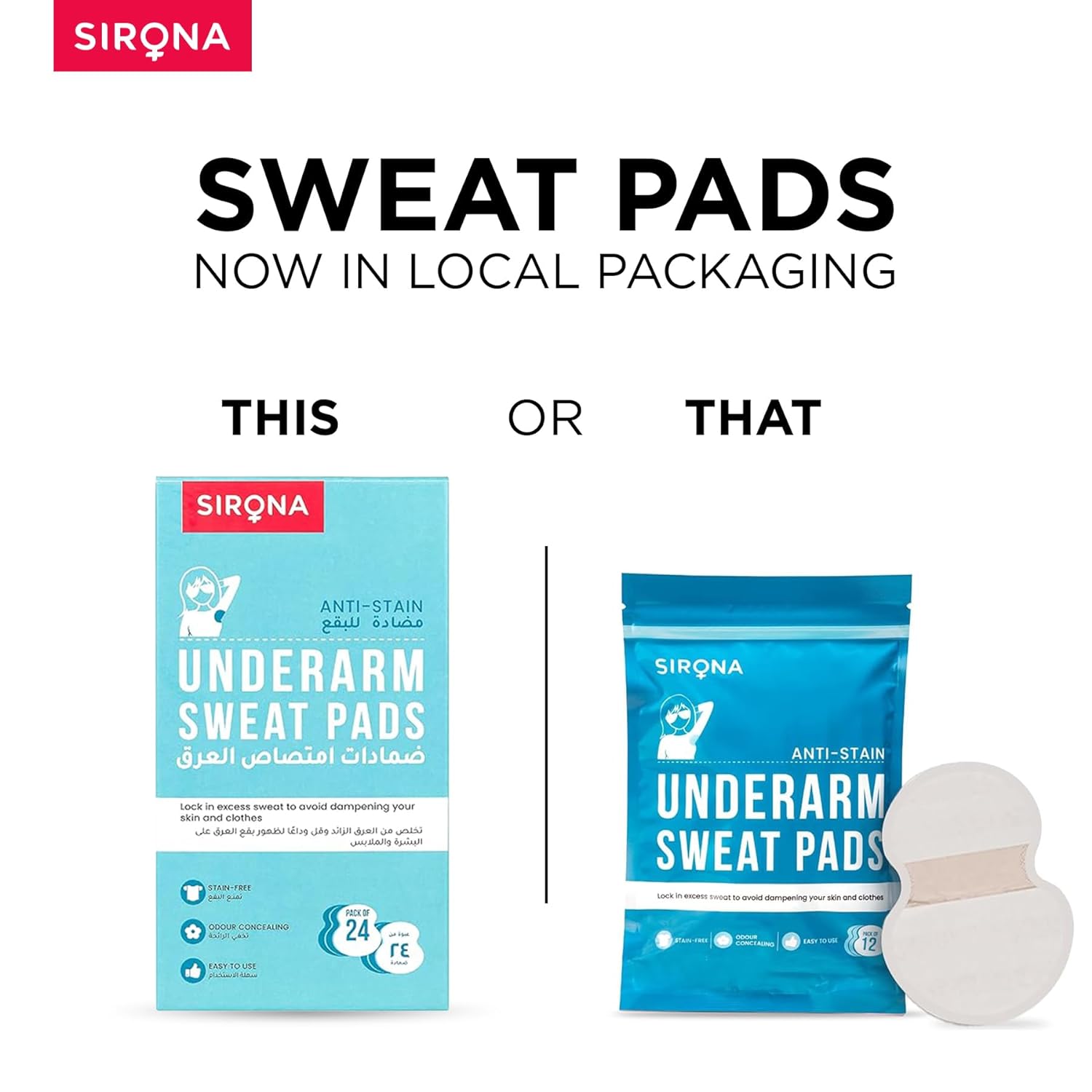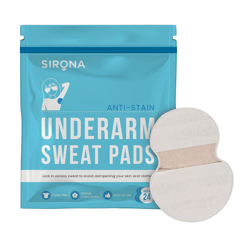 Sirona Underarm Sweat Pads are easy-to-use garment liners that act as a sweat shield, locking in excess sweat and saving your clothes from yellowish stains, and you from odour and embarrassment. These self-adhesive pads are suitable for all garments and can be used by both men and women.