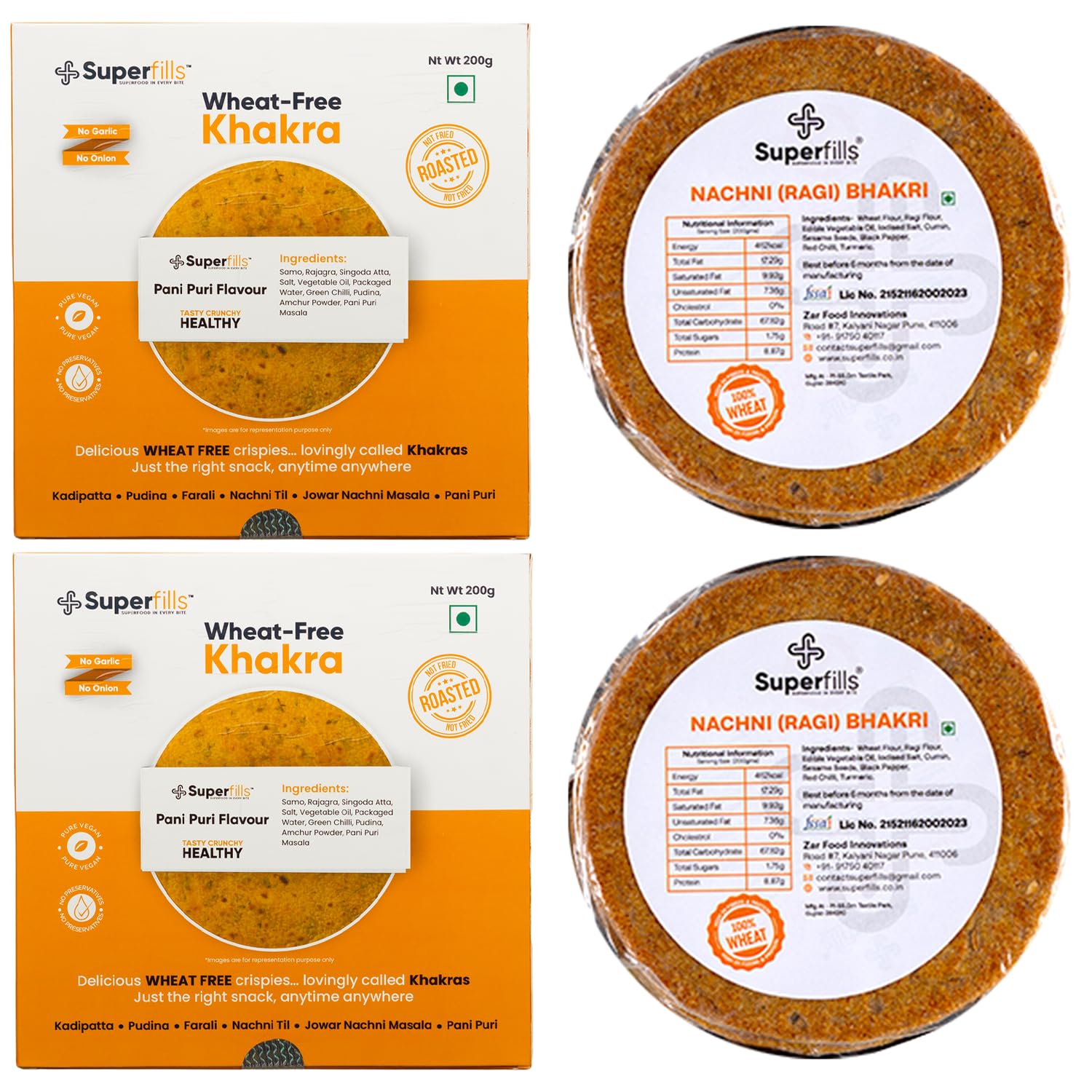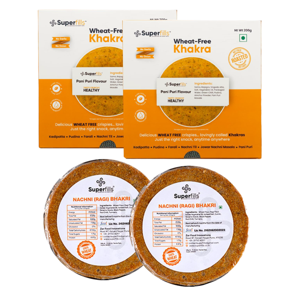 Bhakri is a round flatbread made from coarsely ground atta (wheat, jowar, or bajra). Superfills Bhakhri offers thick, biscuity crisps perfect for snacking. Enjoy traditional whole wheat, barley, Bajra Methi, and Nachni Bhakris, ideal for tea time, work, travel, or mini pizzas.