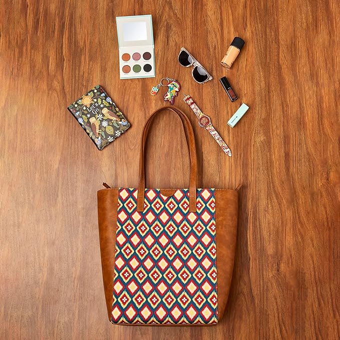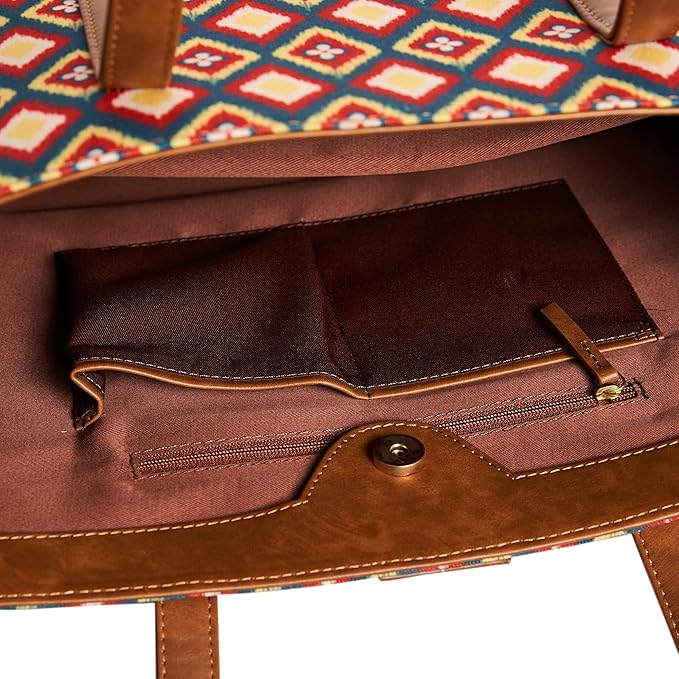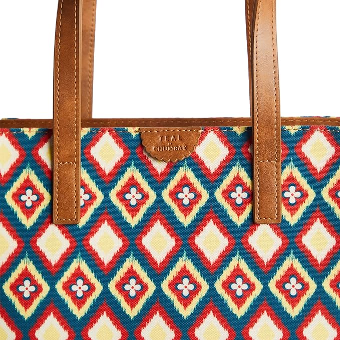 Experience unparalleled quality and style with Teal by Chumbak Shopper Tote Bags. Crafted from printed canvas, these designer bags showcase intricate Indian designs and vibrant colors for a bold statement. Stay organized and chic with magnetic closure and mini compartments. Perfect for shopping, traveling, or running errands.