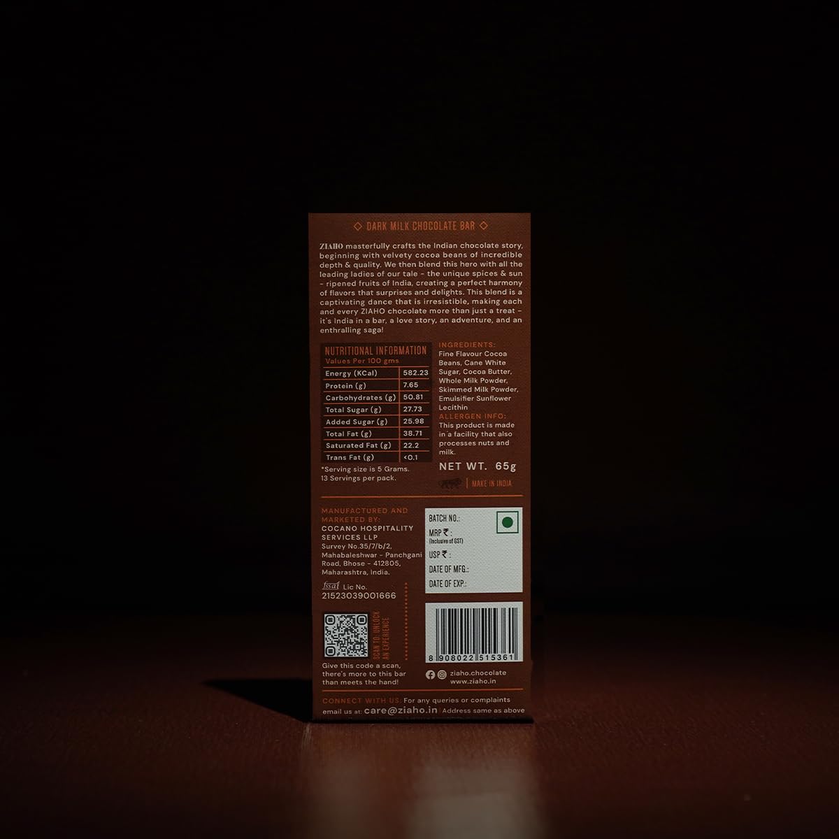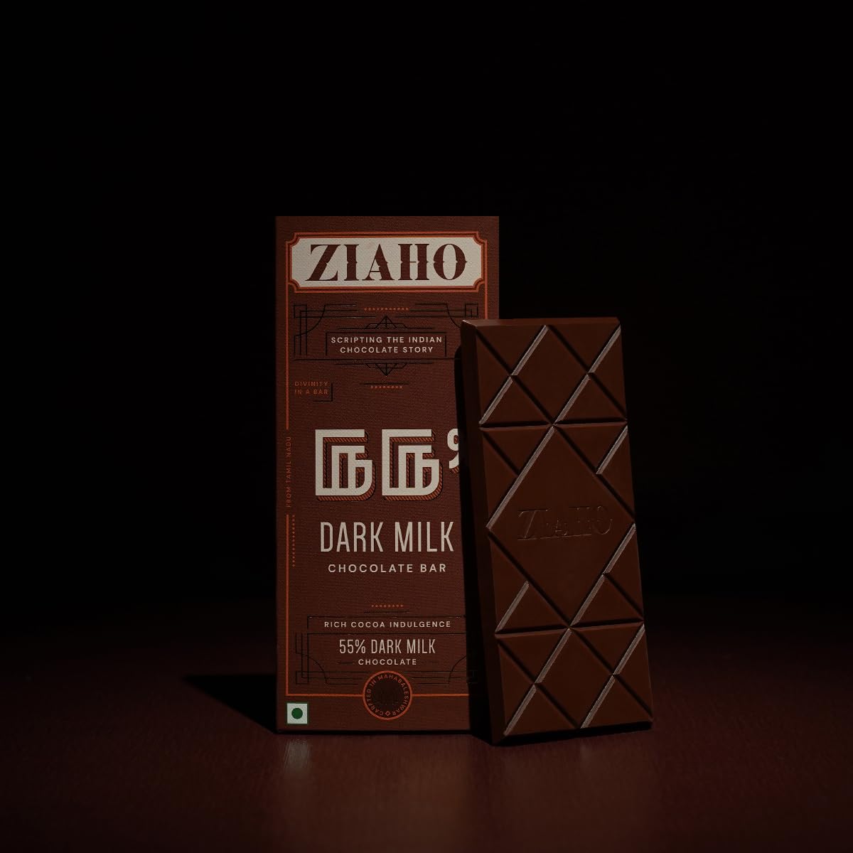 Indulge guilt-free with Ziaho's 55% Dark Milk Chocolate, made from premium Tamil Nadu cocoa beans for a smooth blend of dark and milk chocolate flavors. Perfect for both dark chocolate enthusiasts and those who prefer a milder taste.