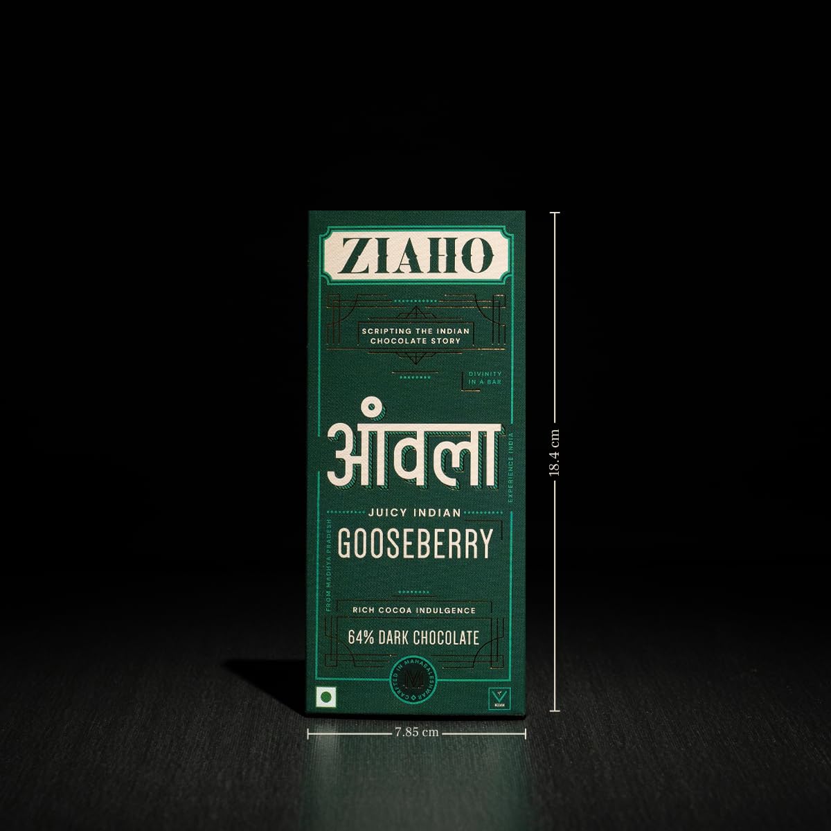 Delight in 64% dark chocolate paired with tangy Indian gooseberries. Made from natural ingredients, this vegan-friendly bar offers a unique and satisfying treat.