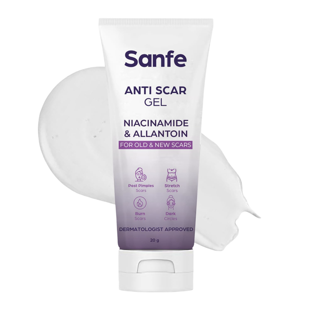 Sanfe Anti Scar Gel is the best treatment for a variety of scars, such as burn, acne, wound, stretch marks, injury, and surgical markings. It lets you see your skin's natural brightness. Enjoy quick and noticeable effects as the sophisticated mixture, enhanced with allantoin and niacinamide, works in concert to reduce the visibility of scars and encourage a smoother complexion.