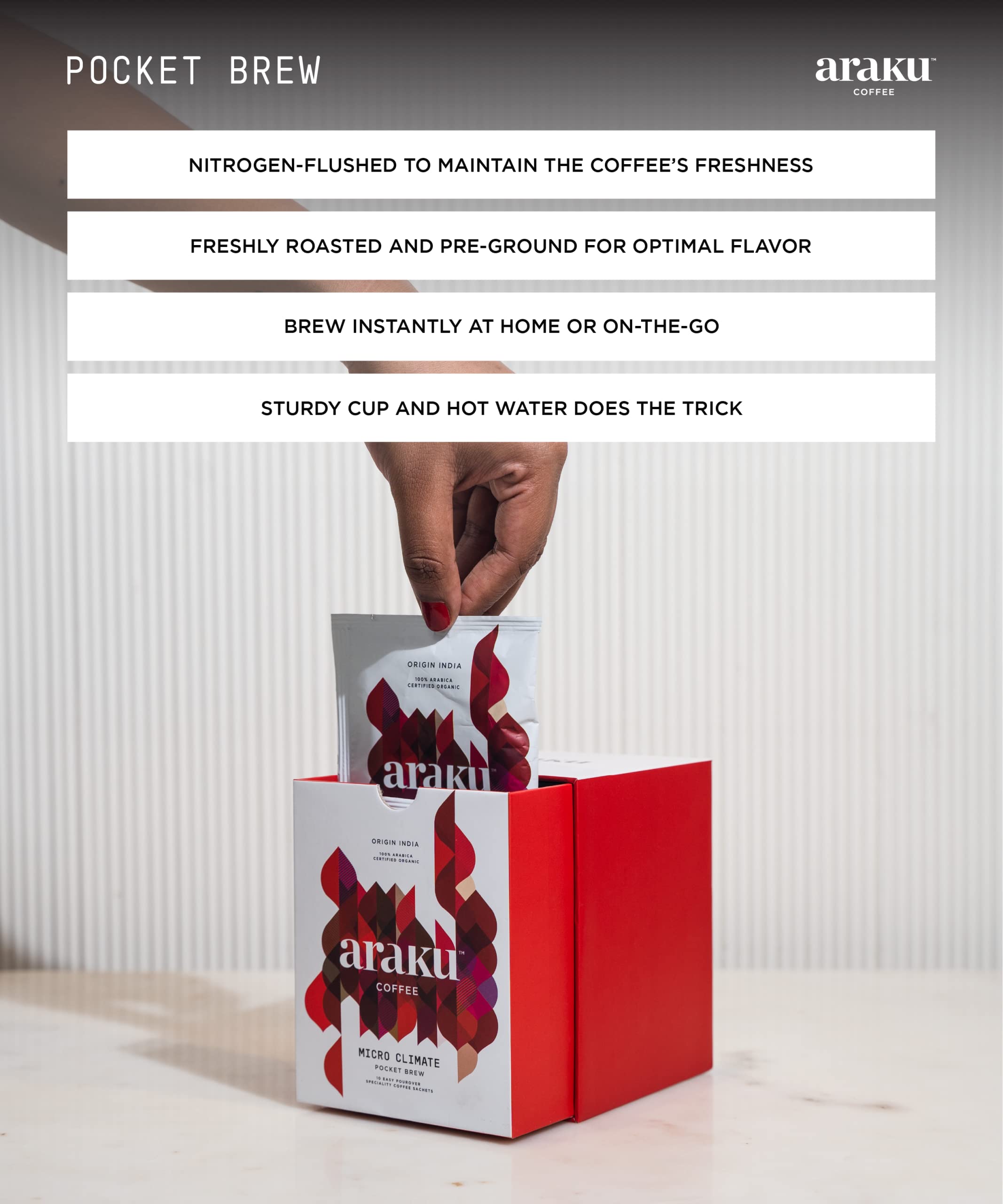 • Each sachet is packaged individually and nitrogen-flushed to maintain the coffee's integrity and freshness.