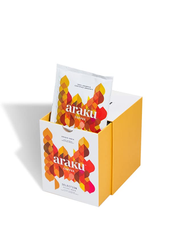 Indulge in our ARAKU Coffee - Selection Pocket Brew, a medium dark roast with notes of dark chocolate, toffee, and sugarcane. Each sachet is nitrogen-flushed for freshness. Simply tear open the drip bag, pour 180ml of hot water into the filter, wait 2 minutes, and enjoy!