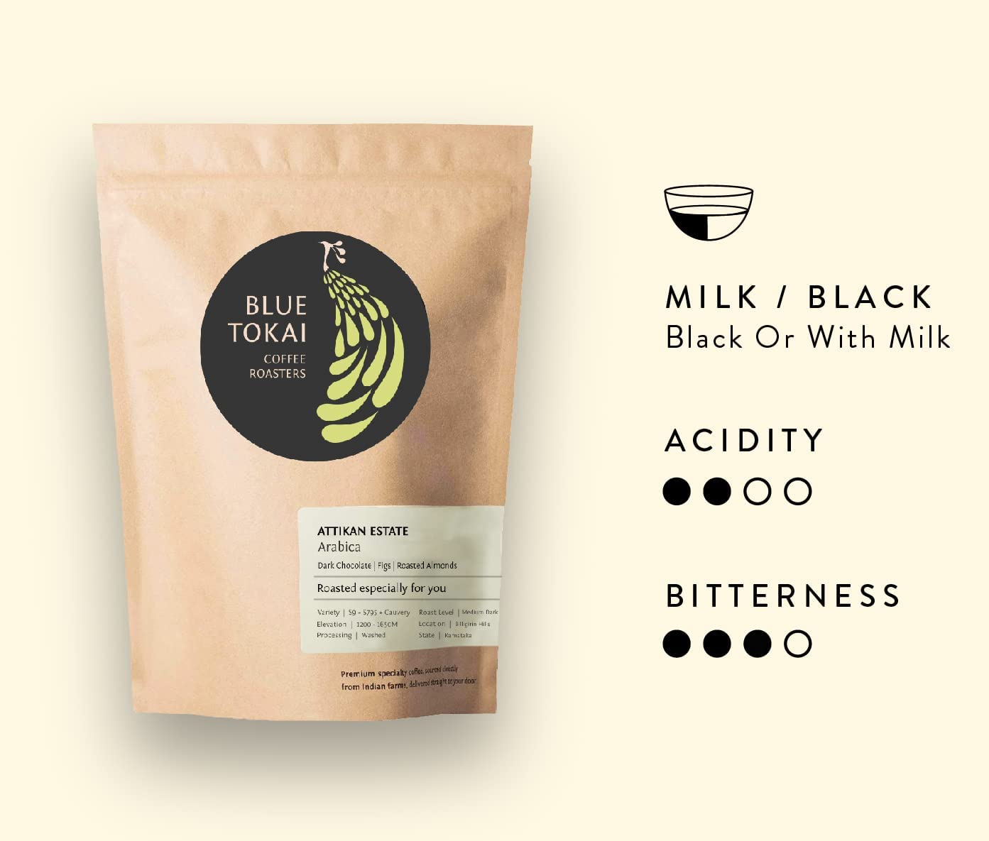• Attikan Estate's arabica coffee comes from the Biligiriranga Hills in Karnataka and is one of most popular coffees. Sweet with fruity overtones and balanced acidity, this is the darkest of our standard medium roasts and recommended for espresso lovers.