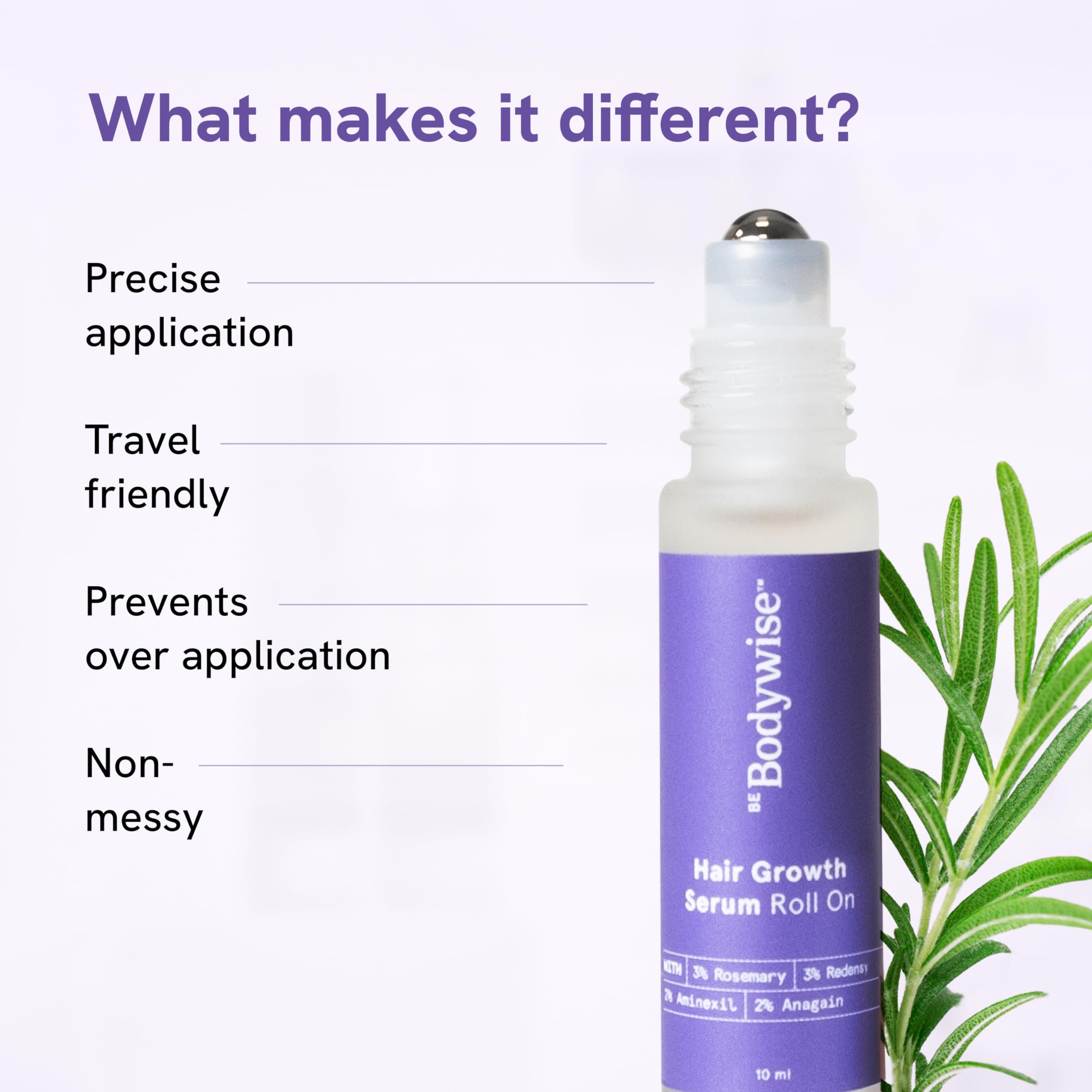 • Be Bodywise hair serum, crafted with a powerful blend of scientifically proven ingredients for thicker and fuller hair.