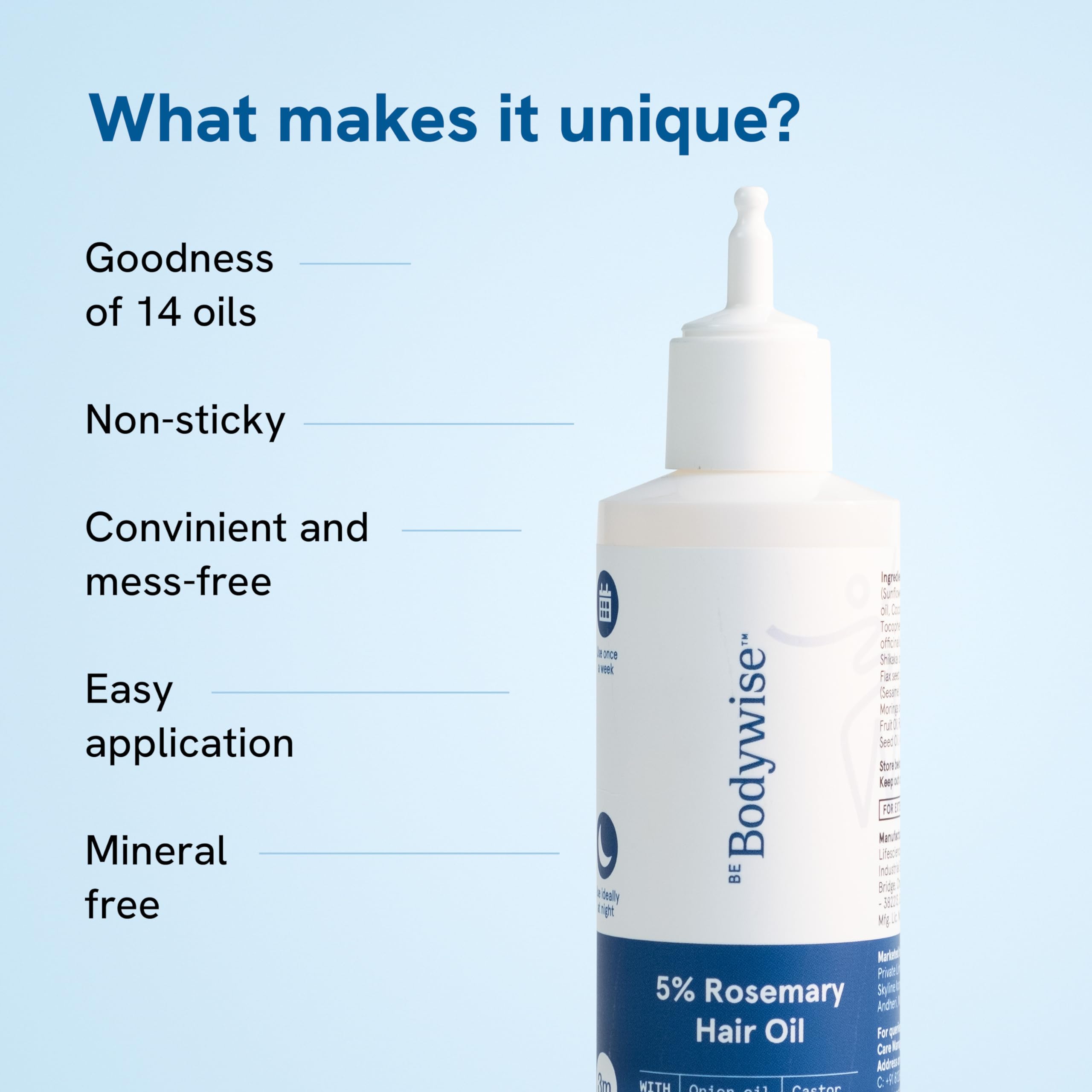 Details: Be Bodywise 5% Rosemary Hair Growth Oil 100ml | With Goodness of 14 Essential Oils | Reduces Hair Fall, Nourishes Scalp & Promotes Hair Growth | Paraben, Mineral Oil Free