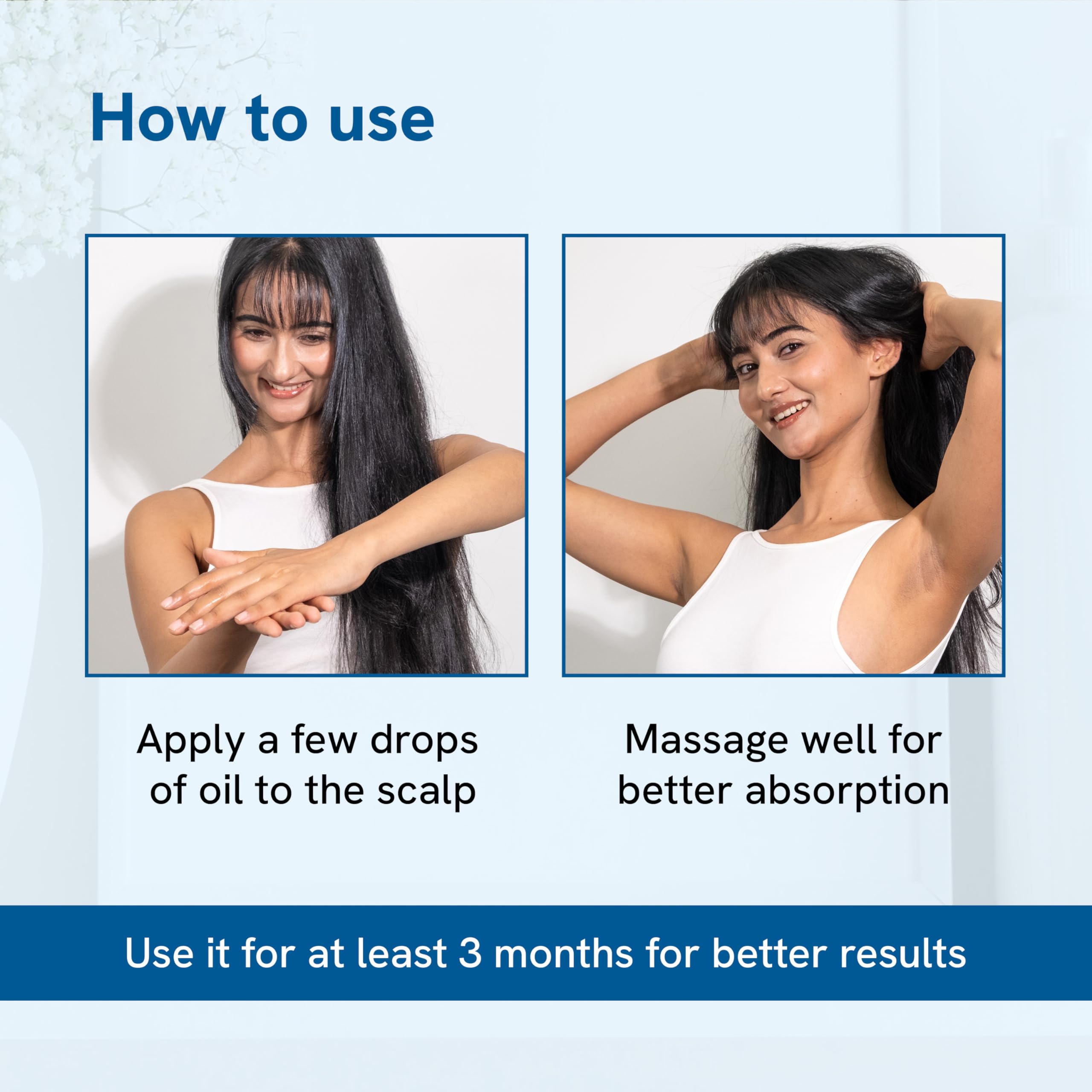 • HOW TO USE: Apply a few drops of oil directly to the scalp and massage for better absorption.