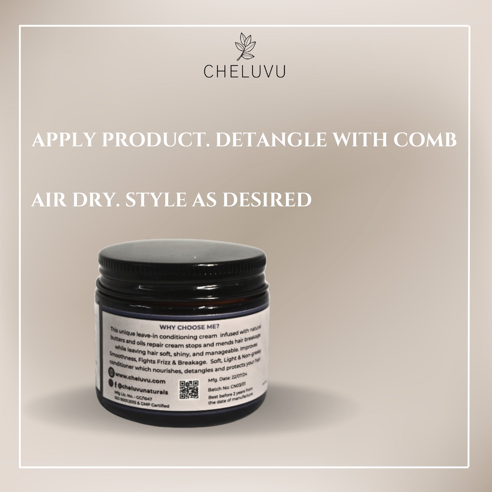 Infused with natural butters and nourishing oils, our leave-in conditioning repair cream stops and mends hair breakage while leaving your hair soft, shiny, and manageable. Experience the benefits of deep hydration and repair as this cream restores your hair’s health and vitality. Perfect for those seeking to revitalize their hair, our product ensures your locks are smooth, radiant, and easy to style. Treat your hair to the best in natural hair care and enjoy the transformation with our premium leave-in conditioner.